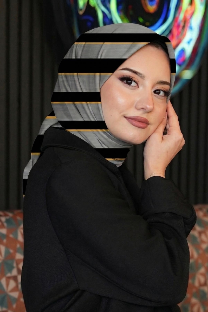 Çizgili Desen Gri Pamuk Eşarp;Ölçü:95x95;Kumaş:%50 Pamuk %50 Polyester;Dört mevsim kullanıma uygundur.;Kolayca şekil alır, önü tok ve dik durur.; Solmaya ve kırışmaya dayanıklıdır.; İç göstermez,kayma yapmaz.; Ütü gerektirmez.;Kullanılan ışıklardan dolayı renk farklılıkları olabilir.