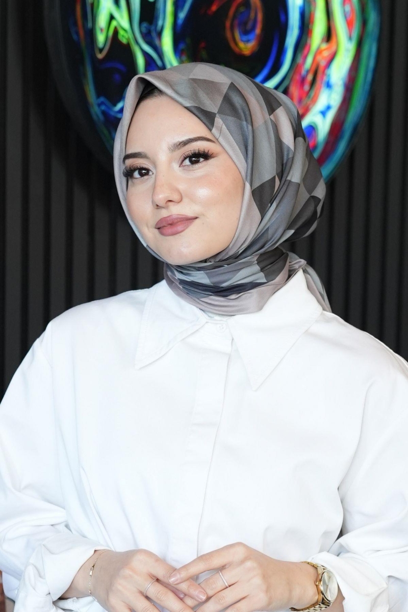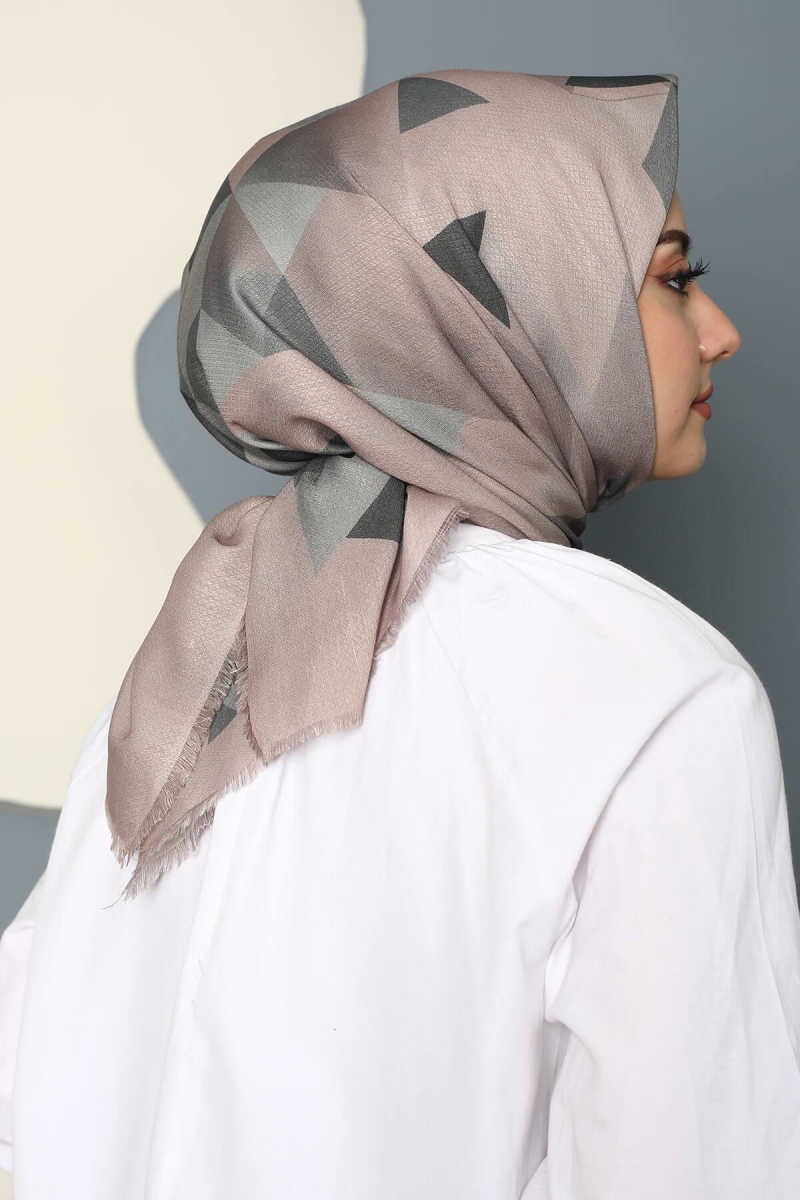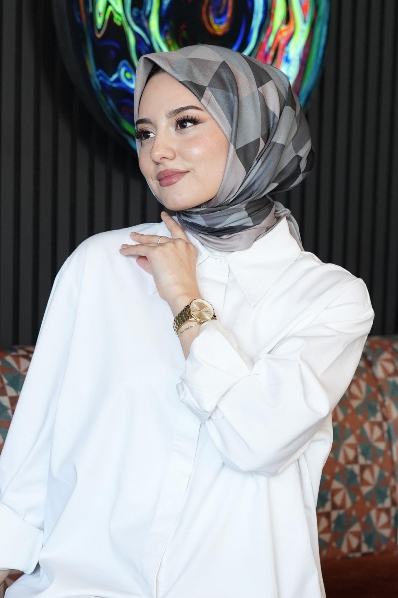Üçgen Desen Gri Pamuk Eşarp;Ölçü:95x95;Kumaş:%50 Pamuk %50 Polyester;Dört mevsim kullanıma uygundur.;Kolayca şekil alır, önü tok ve dik durur.; Solmaya ve kırışmaya dayanıklıdır.; İç göstermez,kayma yapmaz.; Ütü gerektirmez.;Kullanılan ışıklardan dolayı renk farklılıkları olabilir.