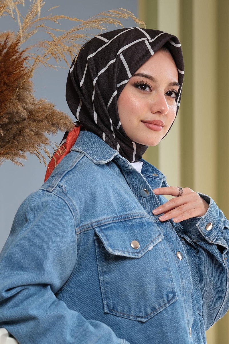 Kesişim Desen Siyah Pamuk Eşarp