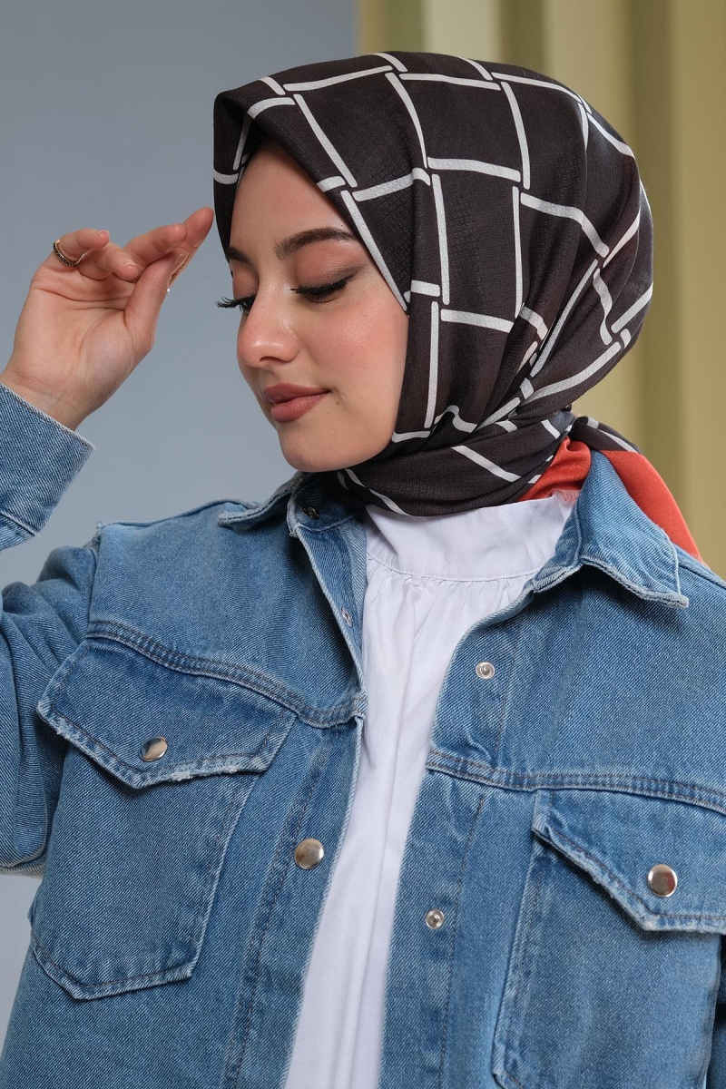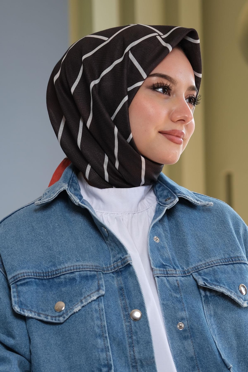 Osmanlı Motif Desen Çikolata Soft Pamuk Eşarp