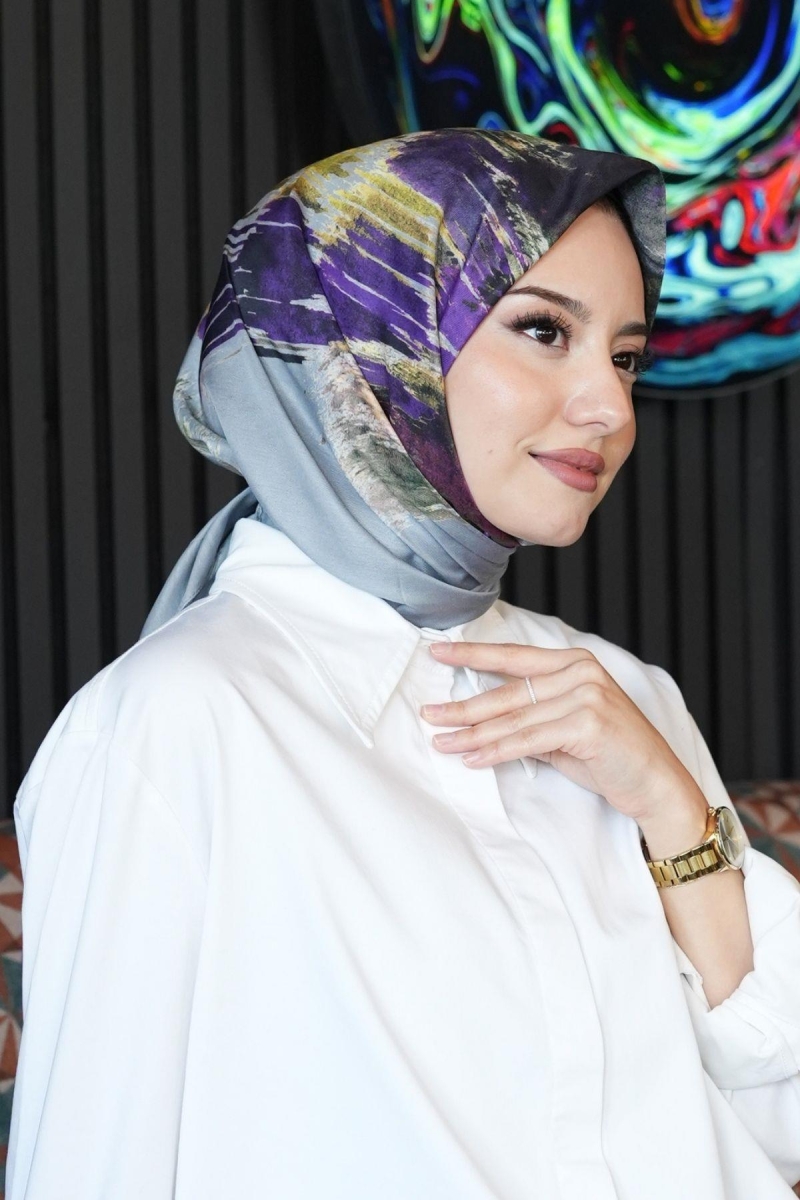 Fırça Desen Mor Pamuk Eşarp;Ölçü:95x95;Kumaş:%50 Pamuk %50 Polyester;Dört mevsim kullanıma uygundur.;Kolayca şekil alır, önü tok ve dik durur.; Solmaya ve kırışmaya dayanıklıdır.; İç göstermez,kayma yapmaz.; Ütü gerektirmez.;Kullanılan ışıklardan dolayı renk farklılıkları olabilir.