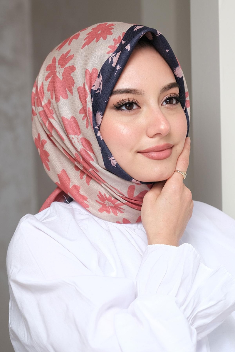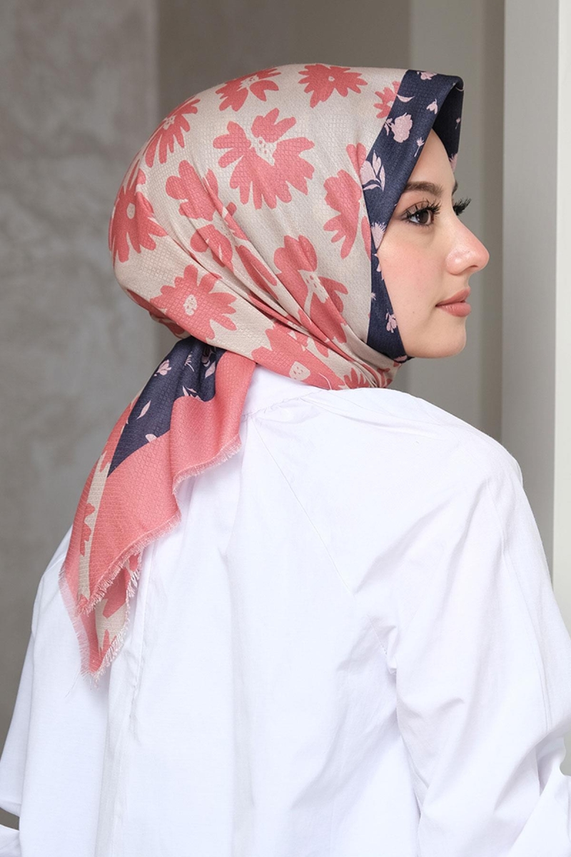Afvente Desenli Pamuk Eşarp Gül kurusu