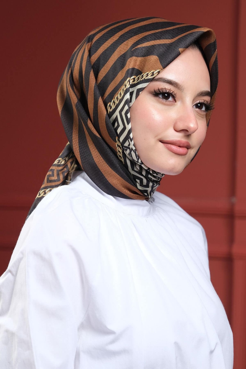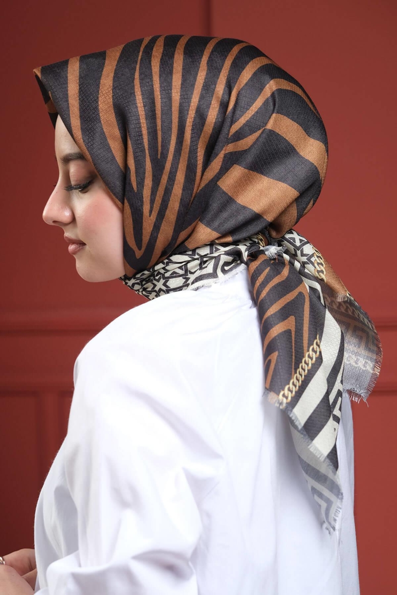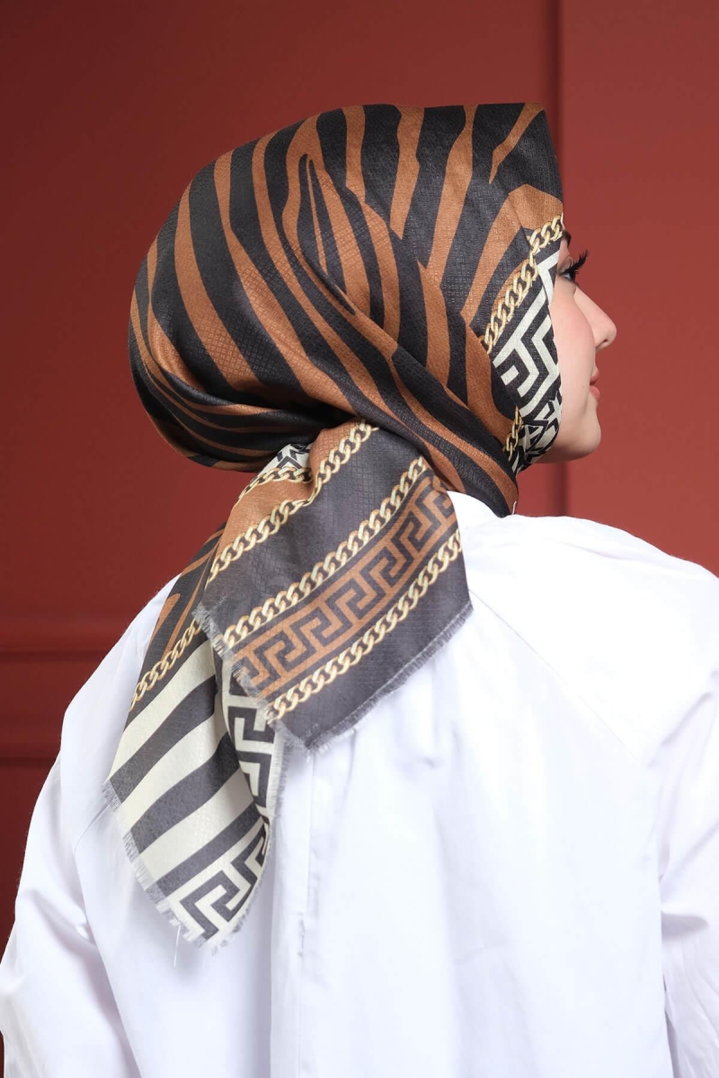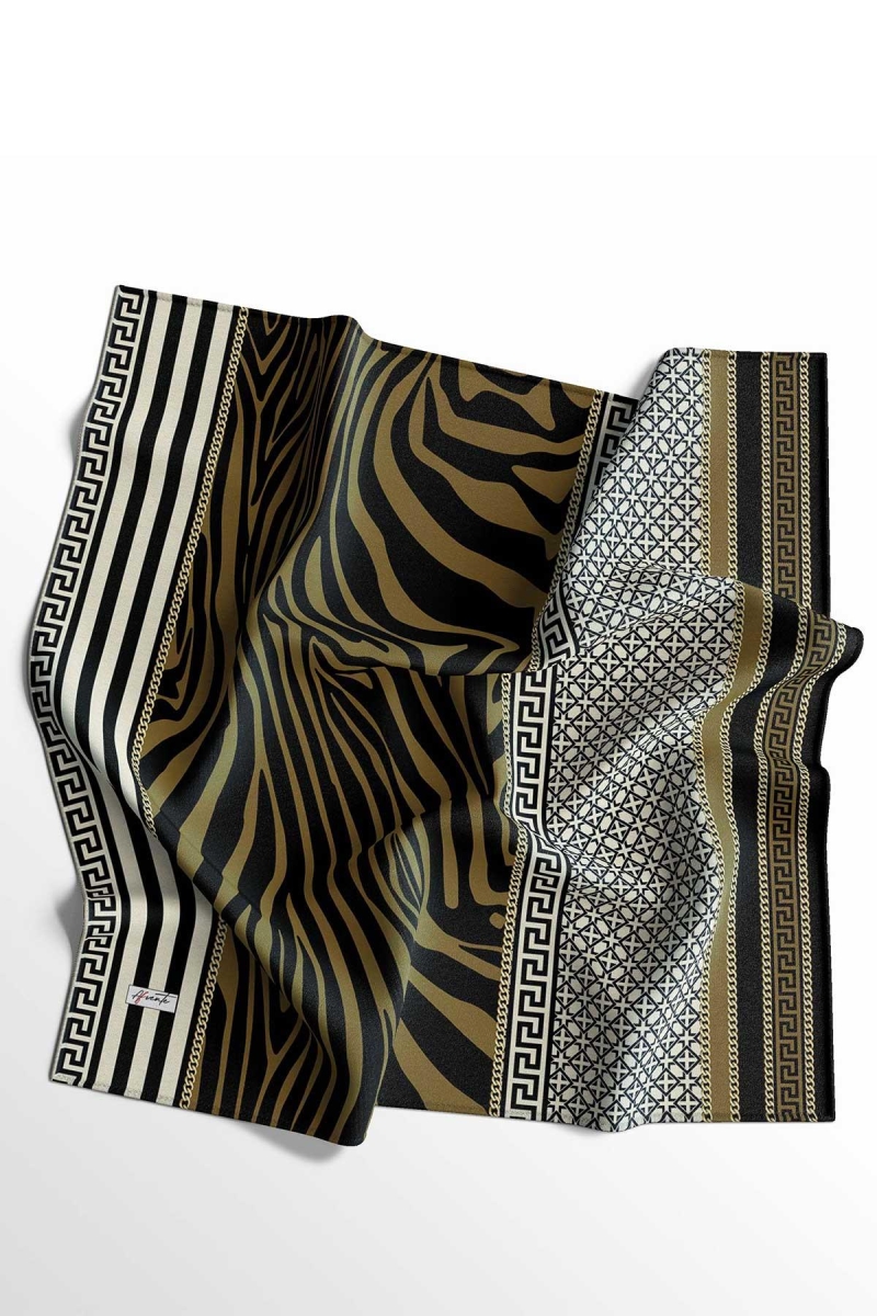 Zebra Desen Altın Pamuk Eşarp;Ölçü:95x95;Kumaş:%50 Pamuk %50 Polyester;Dört mevsim kullanıma uygundur.;Kolayca şekil alır, önü tok ve dik durur.; Solmaya ve kırışmaya dayanıklıdır.; İç göstermez,kayma yapmaz.; Ütü gerektirmez.;Kullanılan ışıklardan dolayı renk farklılıkları olabilir.