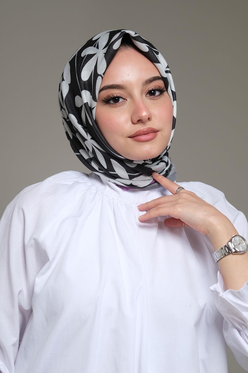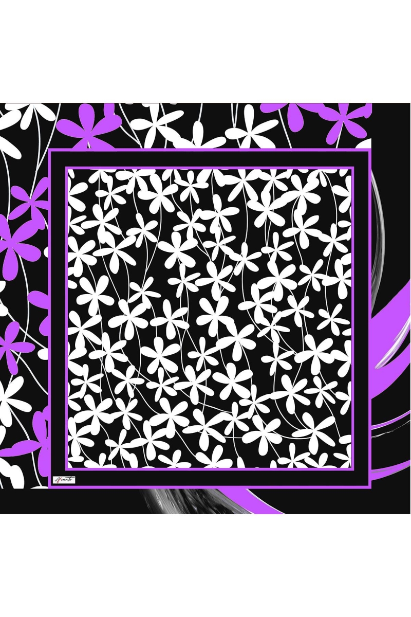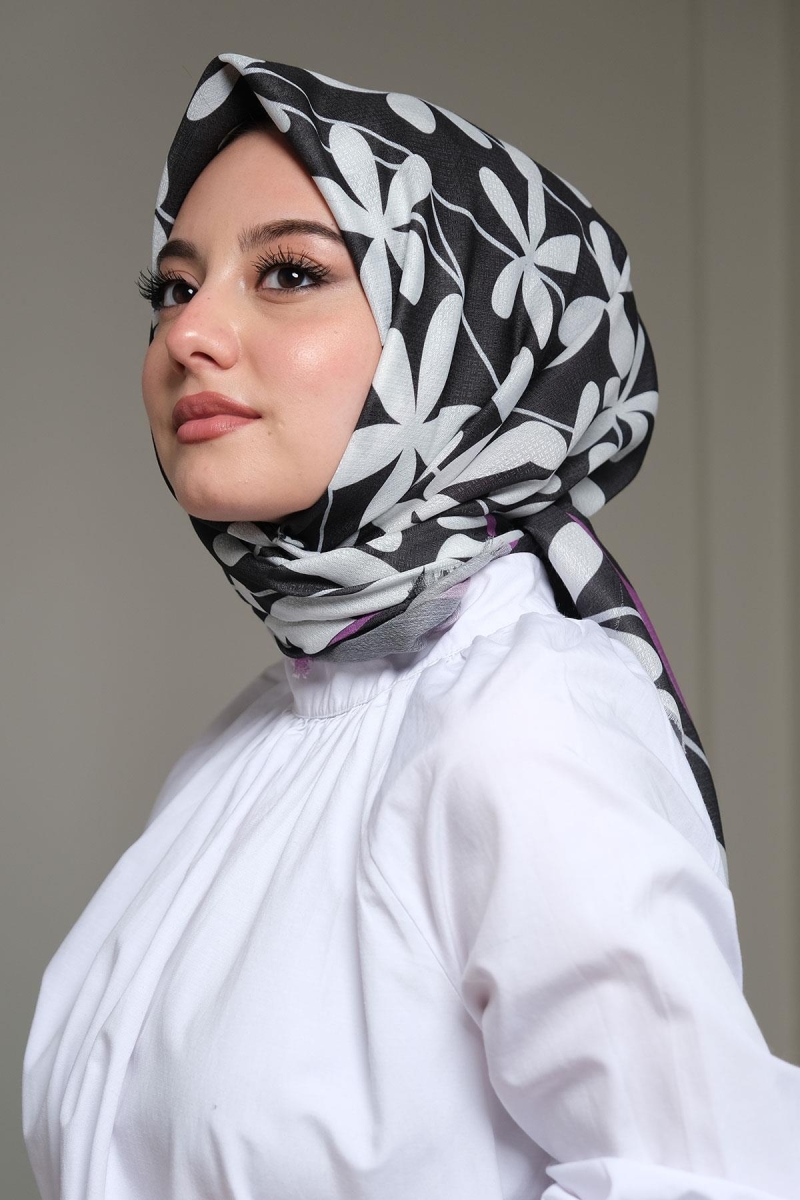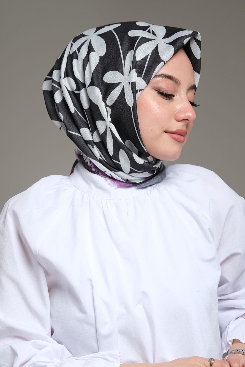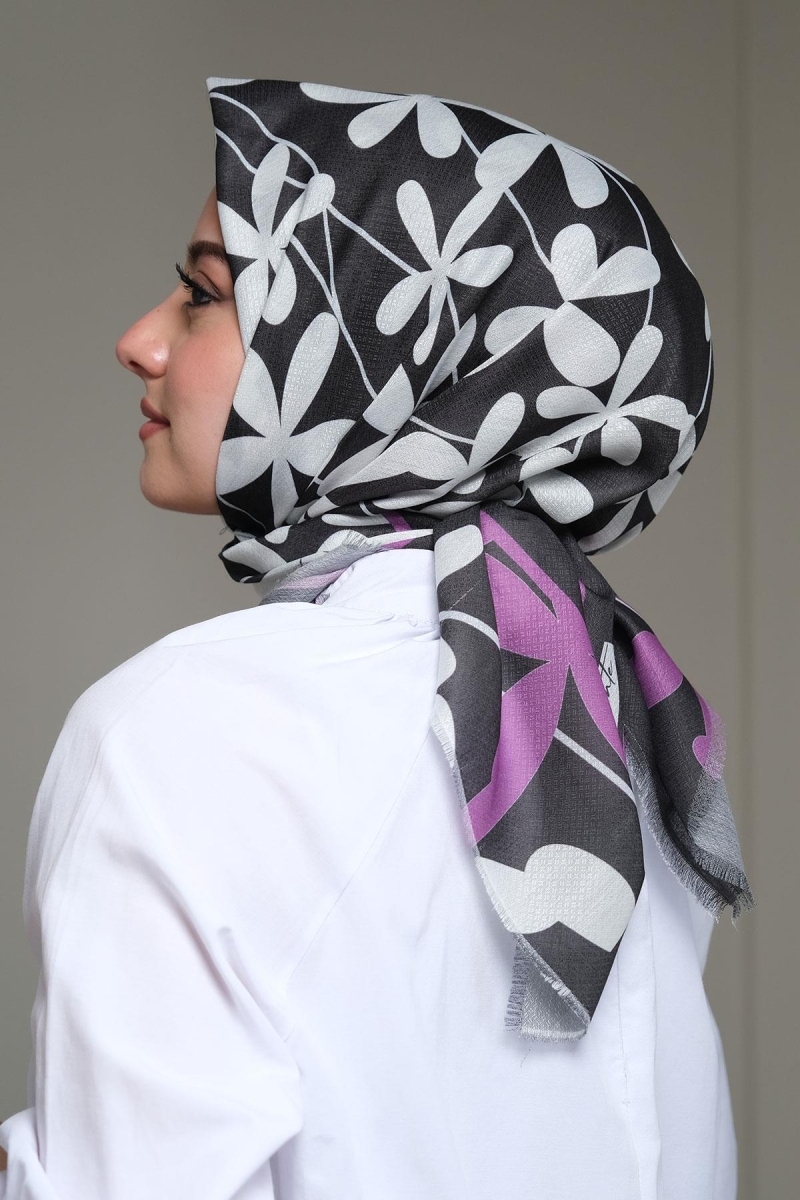 Afvente Desenli Pamuk Eşarp Mor - Siyah