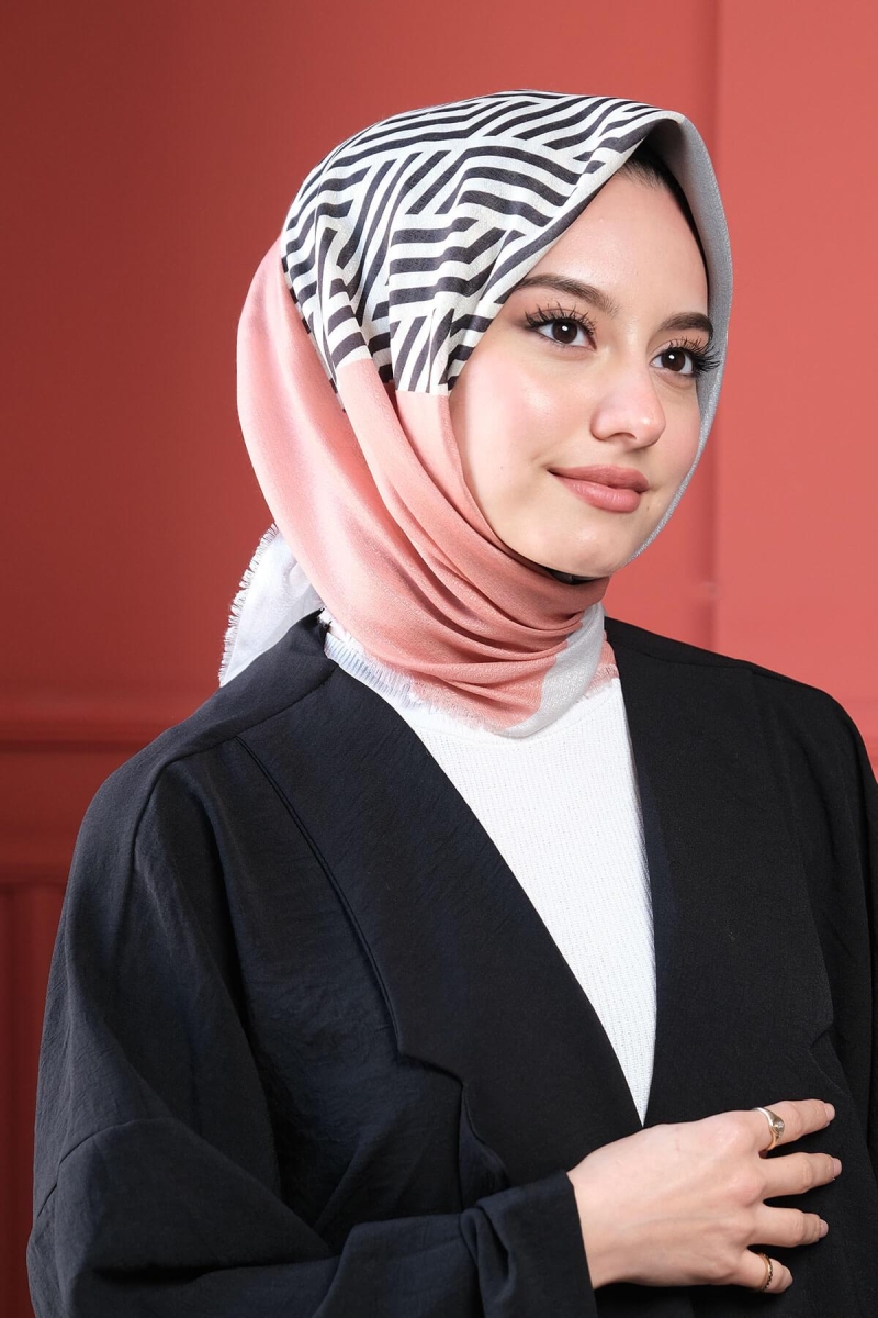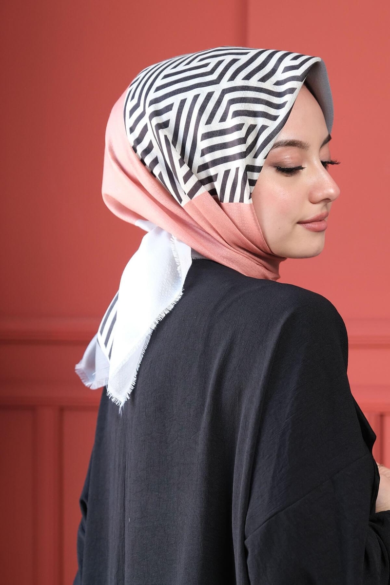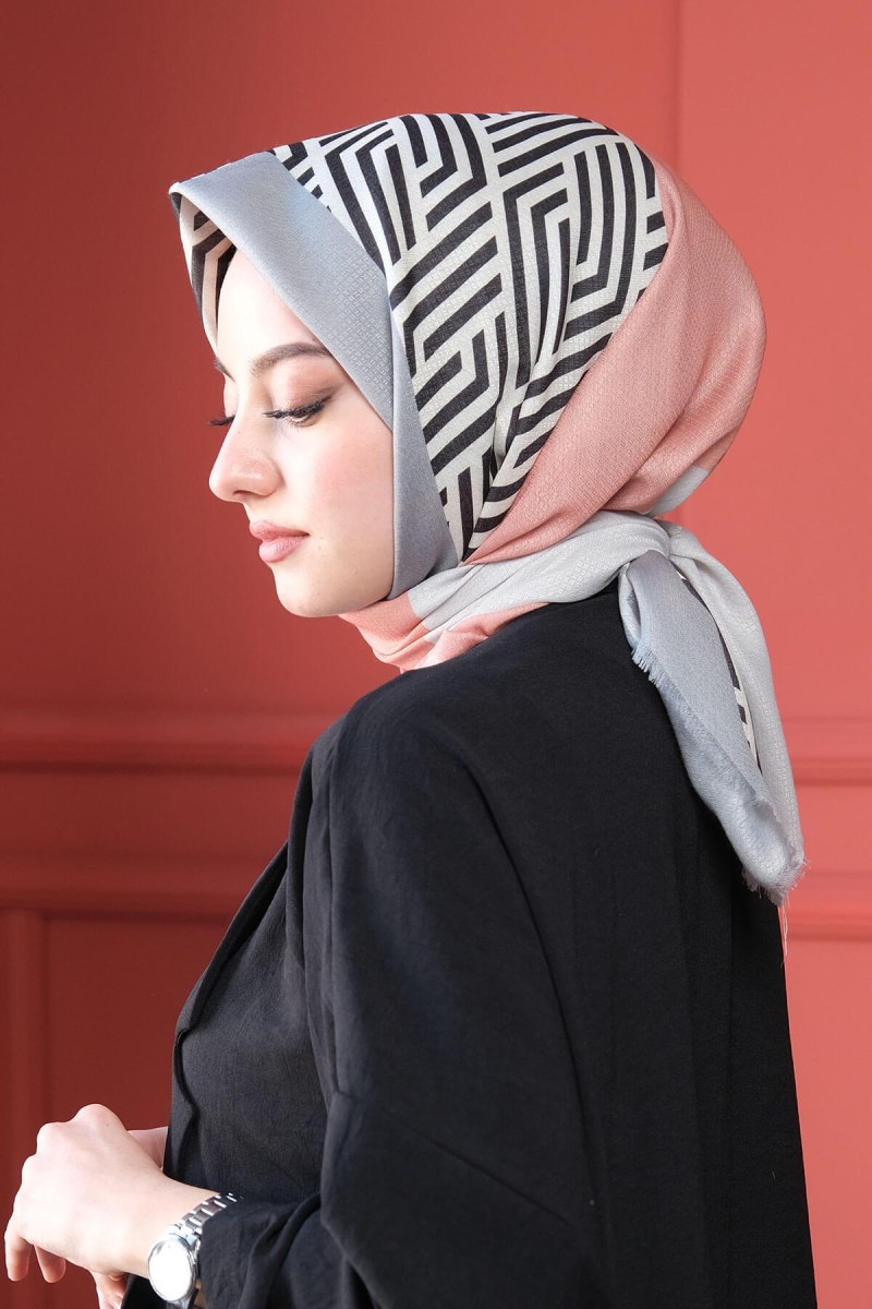 Geometrik Desen Gri - Somon Pamuk Eşarp;Ölçü:95x95;Kumaş:%50 Pamuk %50 Polyester;Dört mevsim kullanıma uygundur.;Kolayca şekil alır, önü tok ve dik durur.; Solmaya ve kırışmaya dayanıklıdır.; İç göstermez,kayma yapmaz.; Ütü gerektirmez.;Kullanılan ışıklardan dolayı renk farklılıkları olabilir.