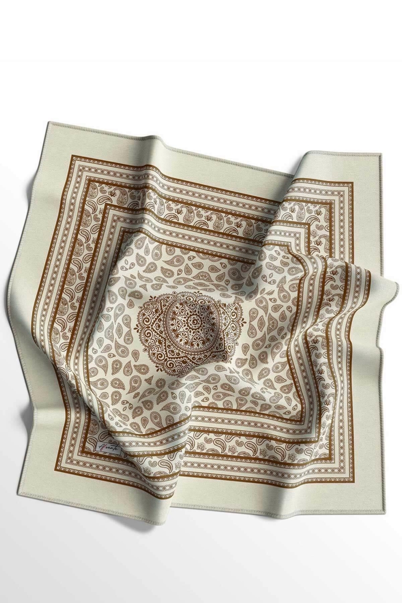 Paisley Desen Bej Pamuk Eşarp;Ölçü:95x95;Kumaş:%50 Pamuk %50 Polyester;Dört mevsim kullanıma uygundur.;Kolayca şekil alır, önü tok ve dik durur.; Solmaya ve kırışmaya dayanıklıdır.; İç göstermez,kayma yapmaz.; Ütü gerektirmez.;Kullanılan ışıklardan dolayı renk farklılıkları olabilir.