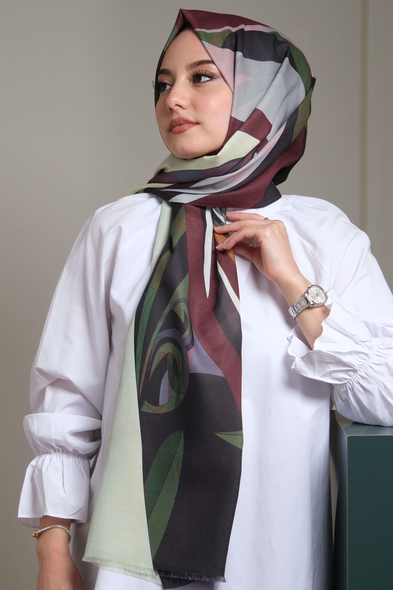 Geometrik Desen Bordo Pamuk Şal;Ölçü:75x185;Kumaş:%50 Pamuk %50 Polyester;Dört mevsim kullanıma uygundur.;Kolayca şekil alır, önü tok ve dik durur.; Solmaya ve kırışmaya dayanıklıdır.; İç göstermez,kayma yapmaz.; Ütü gerektirmez.;Kullanılan ışıklardan dolayı renk farklılıkları olabilir.