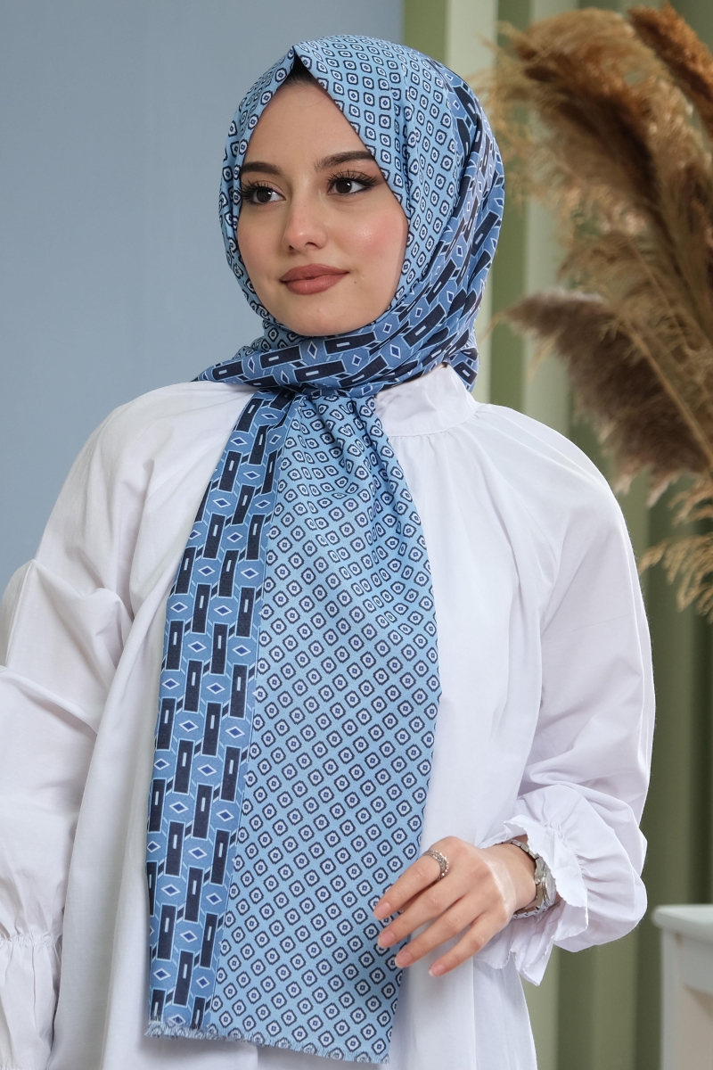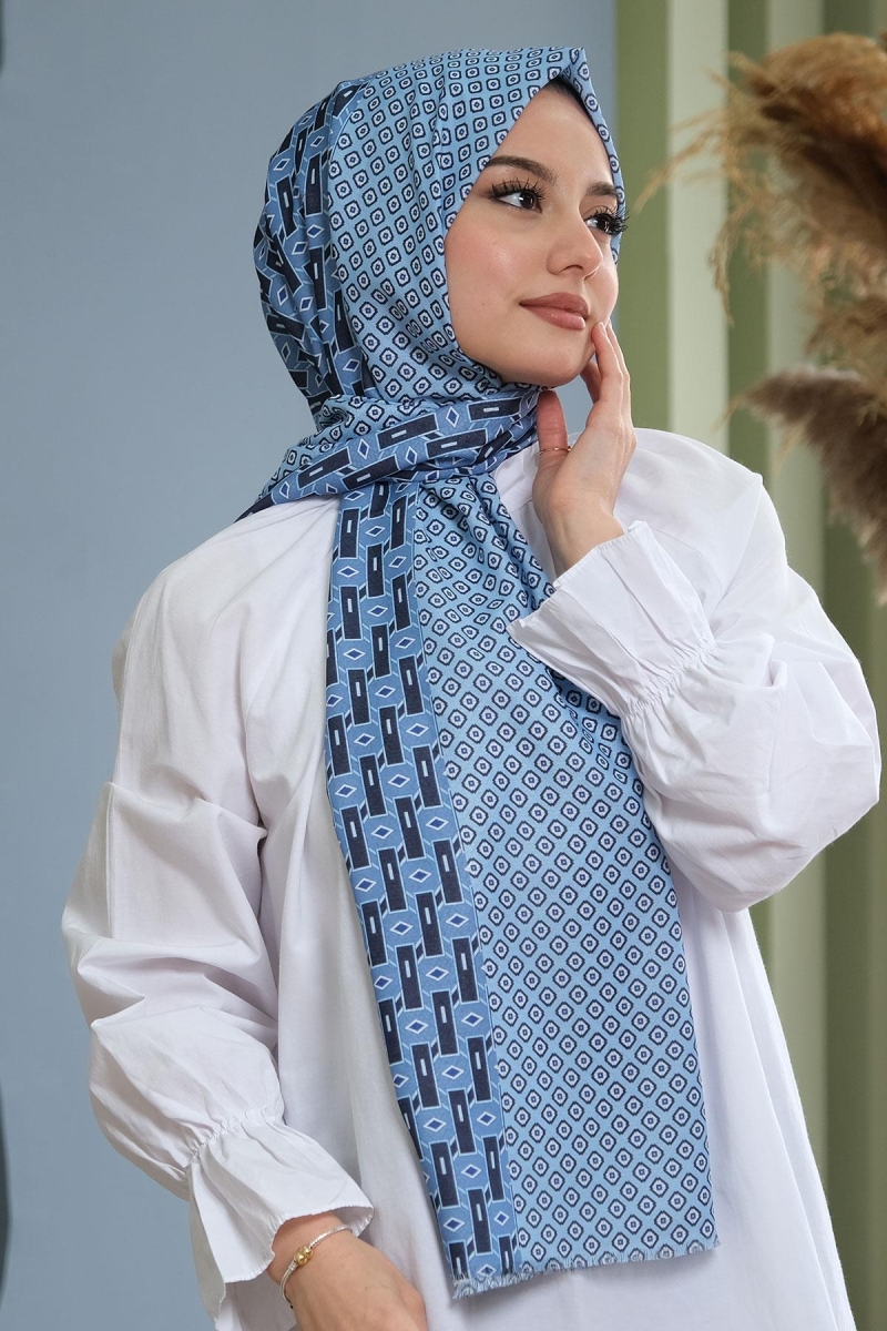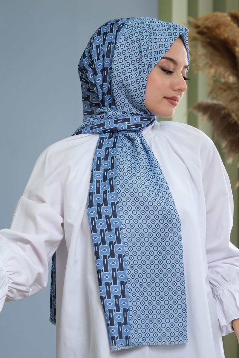 Afvente Desenli Pamuk Şal Kobalt Mavi