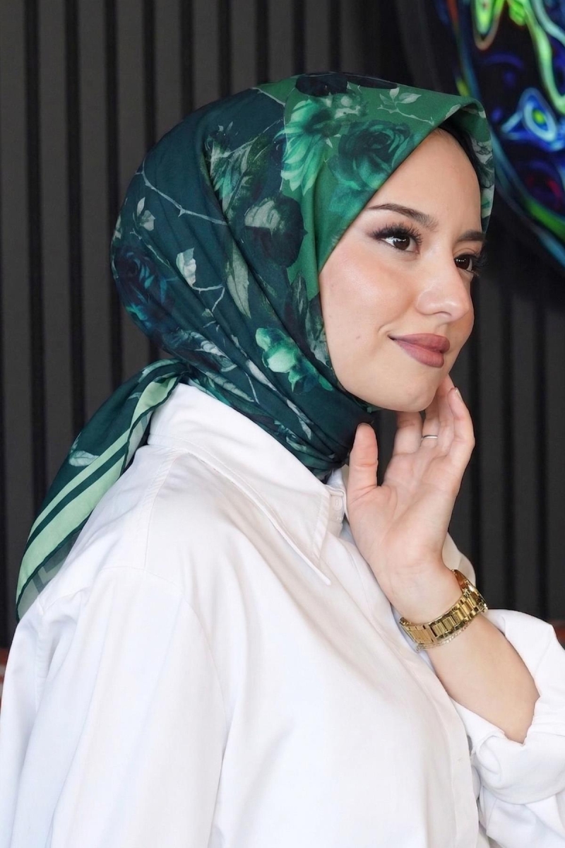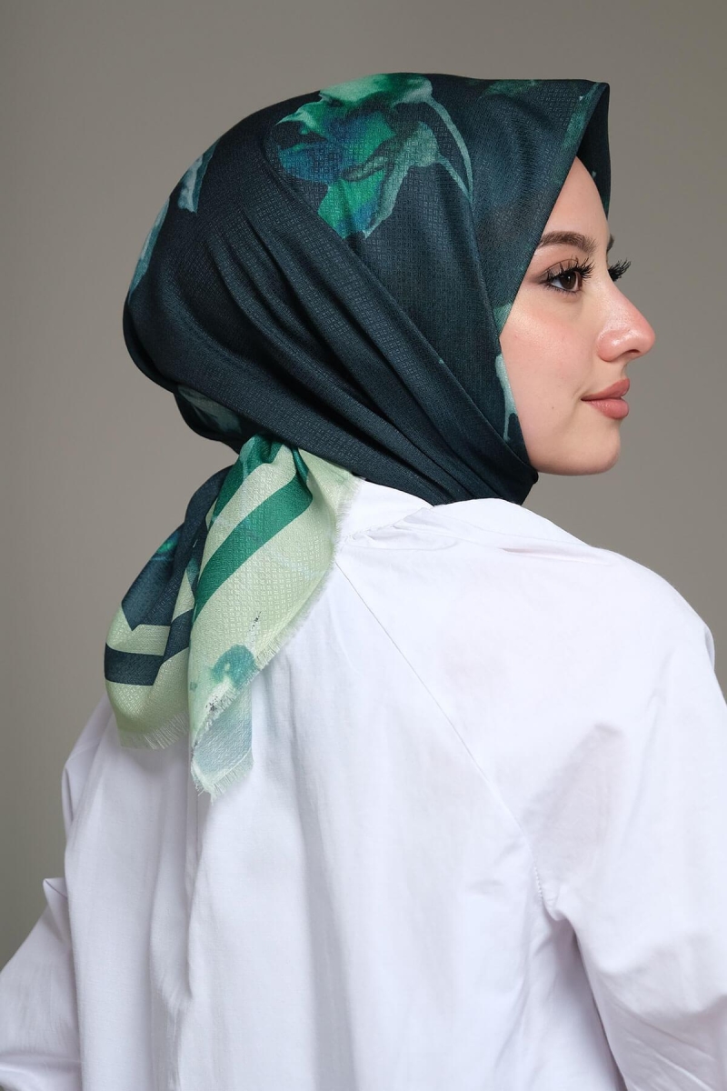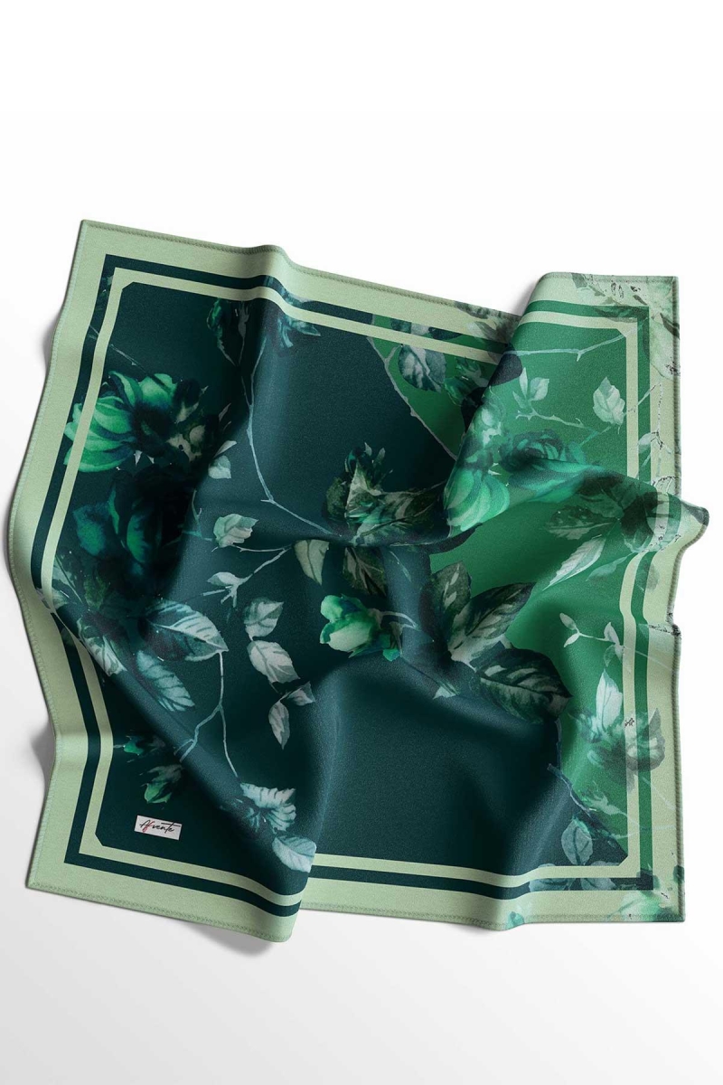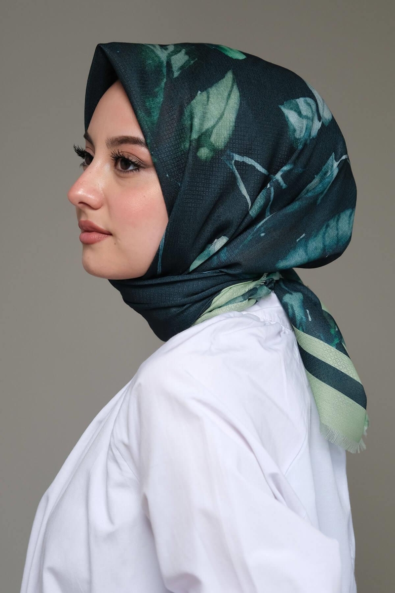 Yaprak Desen Yeşil Pamuk Eşarp;Ölçü:95x95;Kumaş:%50 Pamuk %50 Polyester;Dört mevsim kullanıma uygundur.;Kolayca şekil alır, önü tok ve dik durur.; Solmaya ve kırışmaya dayanıklıdır.; İç göstermez,kayma yapmaz.; Ütü gerektirmez.;Kullanılan ışıklardan dolayı renk farklılıkları olabilir.