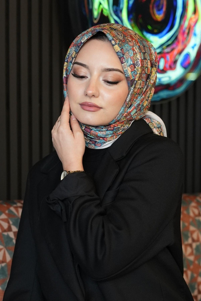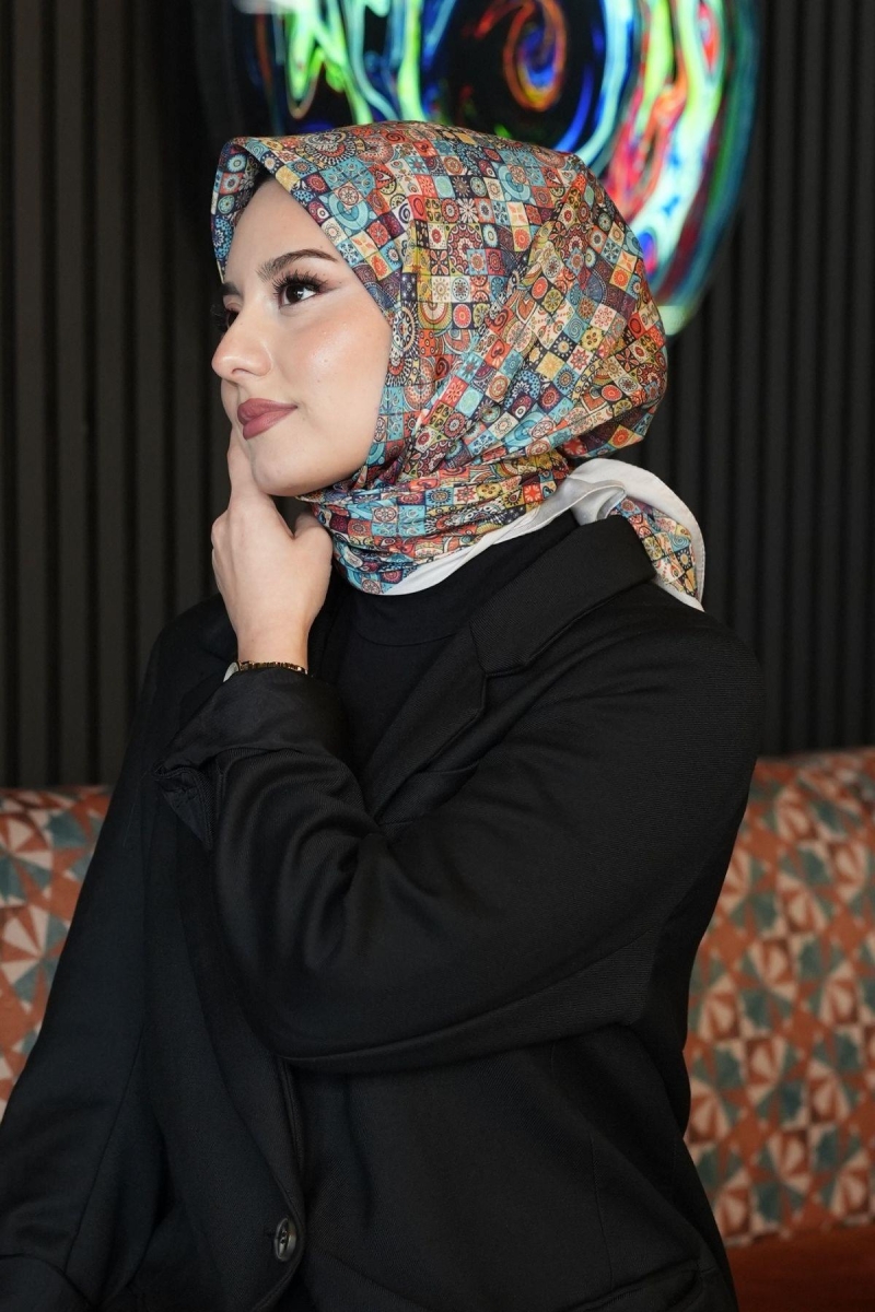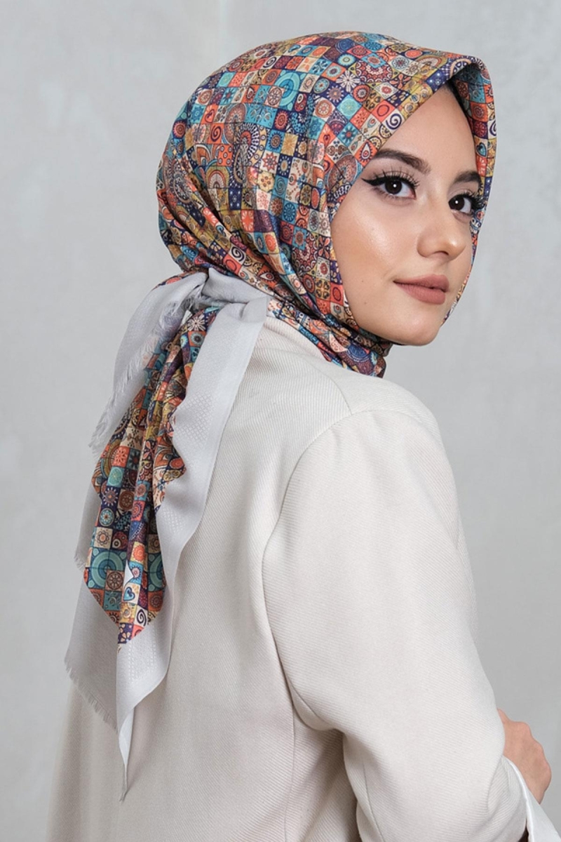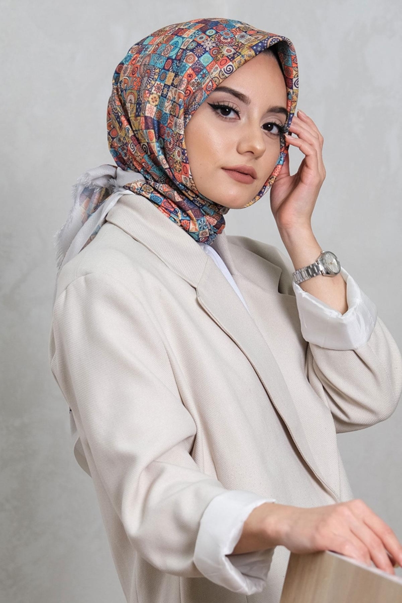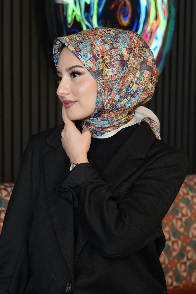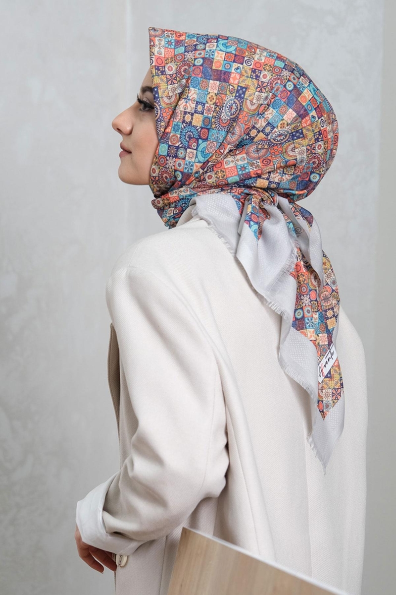 Geometrik Desen Mavi Pamuk Eşarp;Ölçü:95x95;Kumaş:%50 Pamuk %50 Polyester;Dört mevsim kullanıma uygundur.;Kolayca şekil alır, önü tok ve dik durur.; Solmaya ve kırışmaya dayanıklıdır.; İç göstermez,kayma yapmaz.; Ütü gerektirmez.;Kullanılan ışıklardan dolayı renk farklılıkları olabilir.