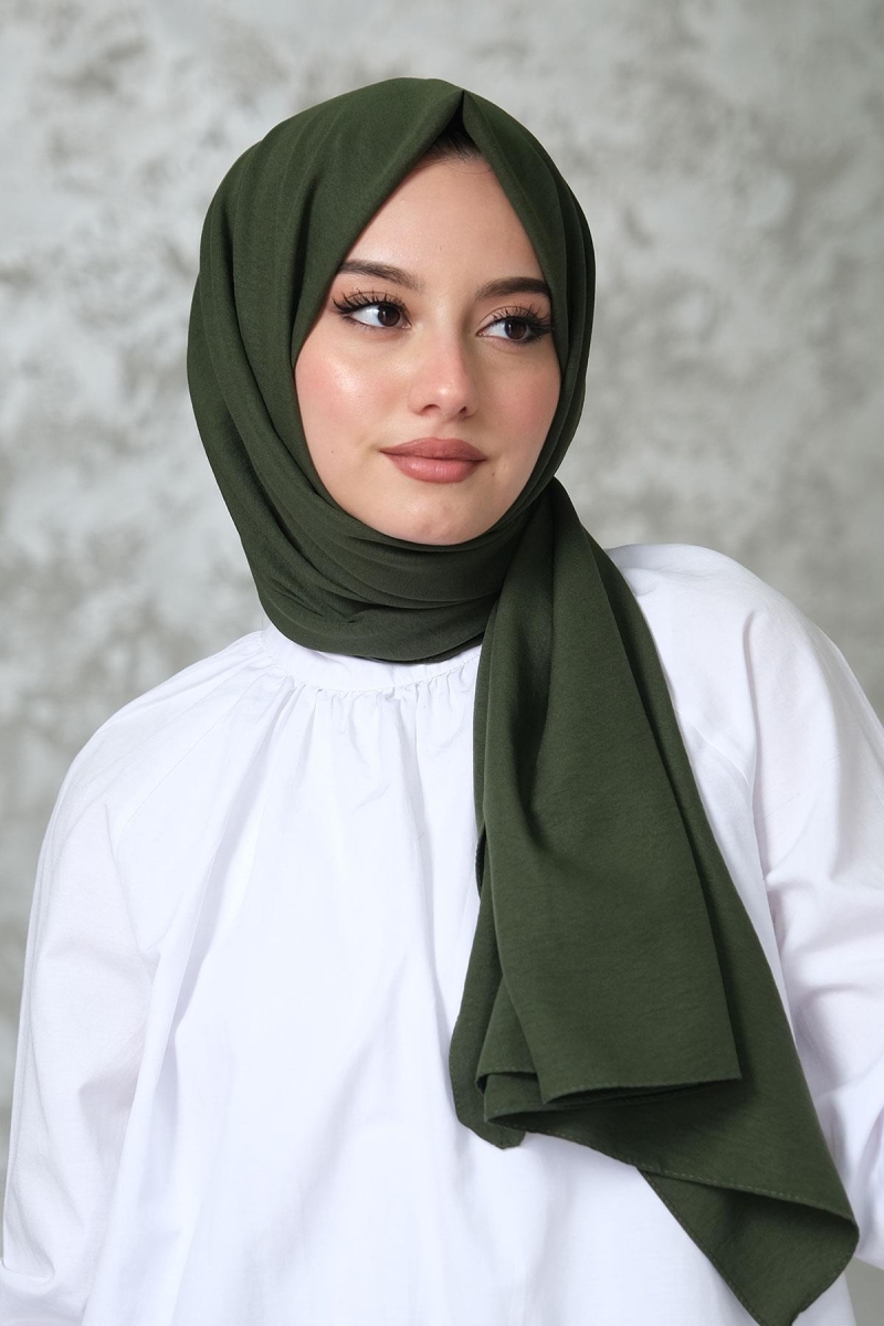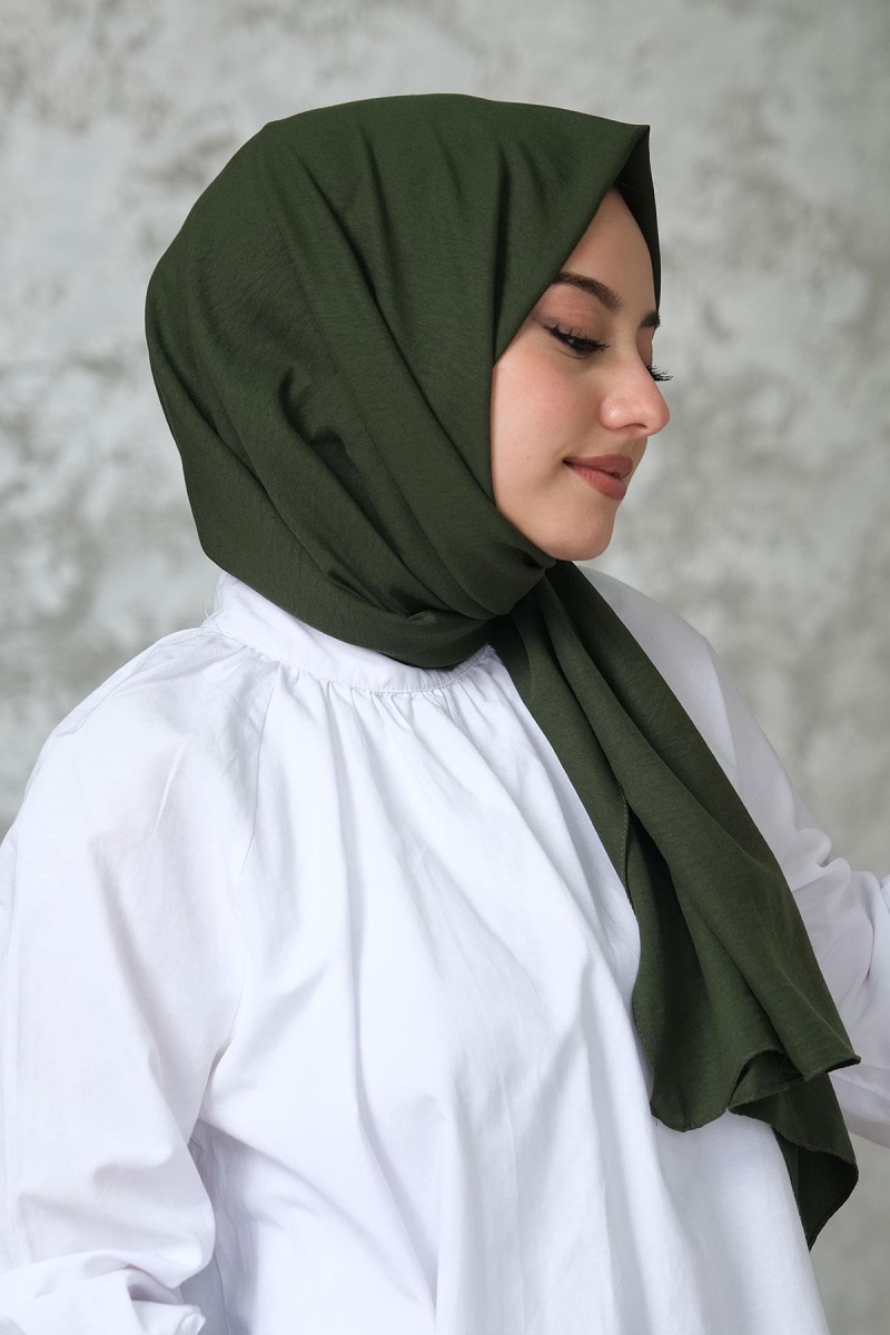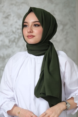 Haki Pamuk Cazz Şal;Ölçü:75x180;Kumaş:%70 Pamuk %30 Polyester;Dört mevsim kullanıma uygundur.;Kolayca şekil alır, önü tok ve dik durur.; Solmaya ve kırışmaya dayanıklıdır.; İç göstermez,kayma yapmaz.; Ütü gerektirmez.;Kullanılan ışıklardan dolayı renk farklılıkları olabilir.
