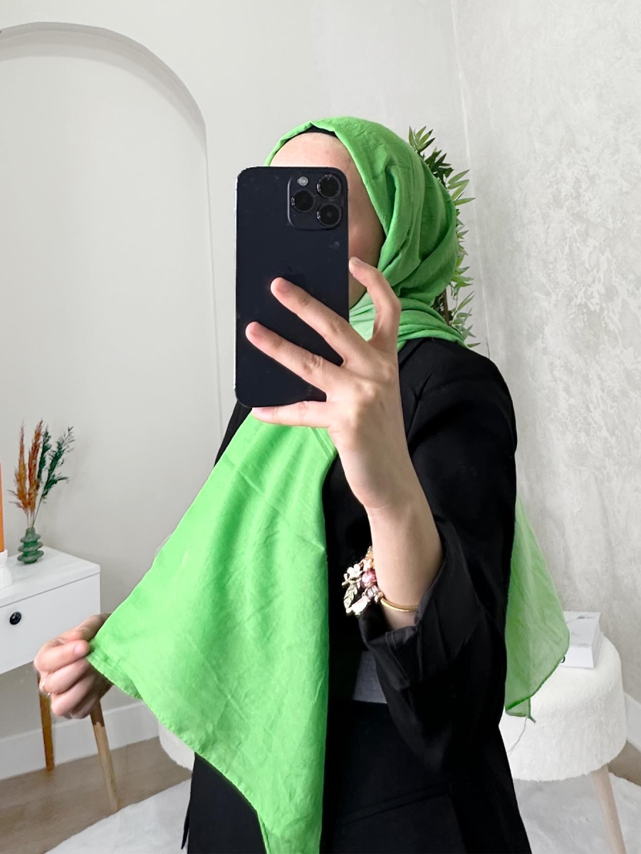 Benetton Yeşili Kraş Pamuk Şal;Ölçü:80x185;Kumaş:%50 Pamuk %50 Polyester;Dört mevsim kullanıma uygundur.;Kolayca şekil alır, önü tok ve dik durur.; Solmaya ve kırışmaya dayanıklıdır.; İç göstermez,kayma yapmaz.; Ütü gerektirmez.;Kullanılan ışıklardan dolayı renk farklılıkları olabilir.