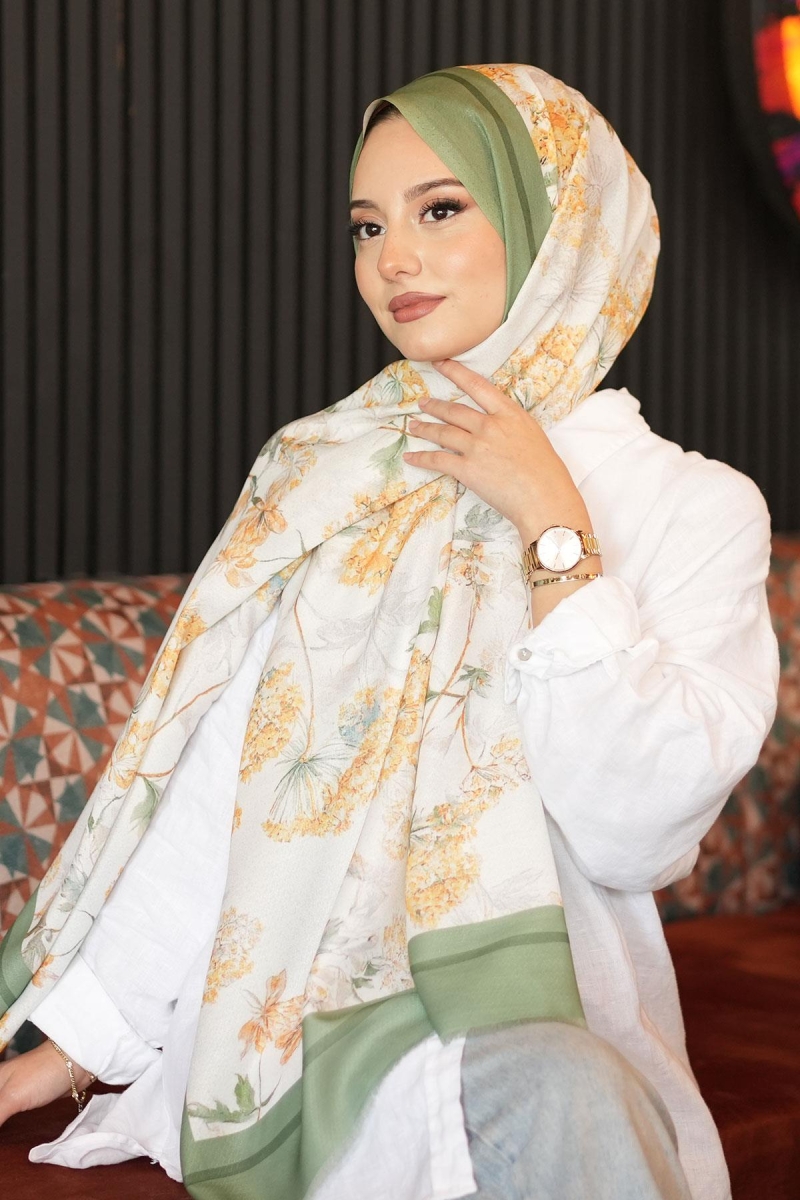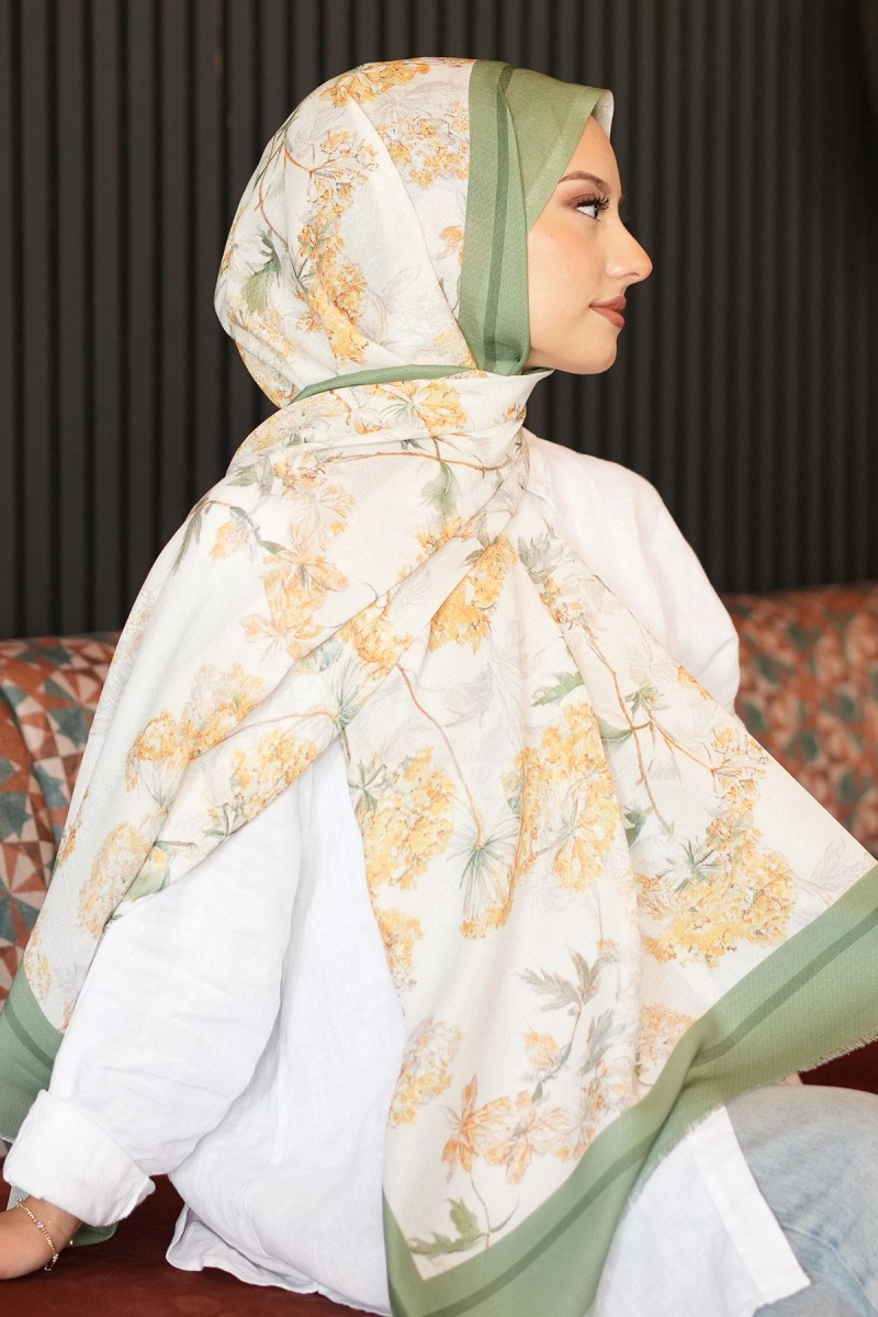 Çiçek Desen Sarı Pamuk Şal;Ölçü:75x185;Kumaş:%50 Pamuk %50 Polyester;Dört mevsim kullanıma uygundur.;Kolayca şekil alır, önü tok ve dik durur.; Solmaya ve kırışmaya dayanıklıdır.; İç göstermez,kayma yapmaz.; Ütü gerektirmez.;Kullanılan ışıklardan dolayı renk farklılıkları olabilir.