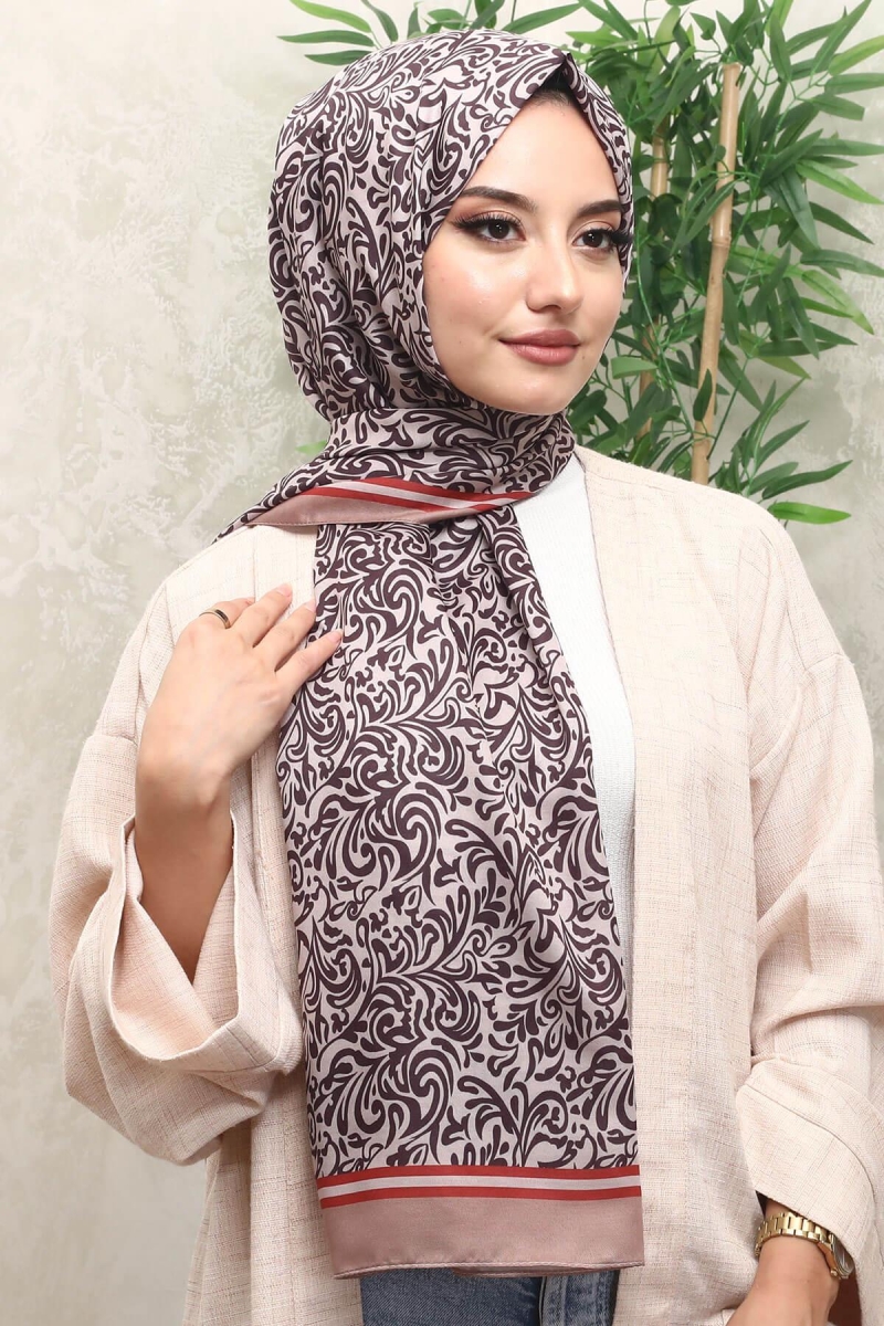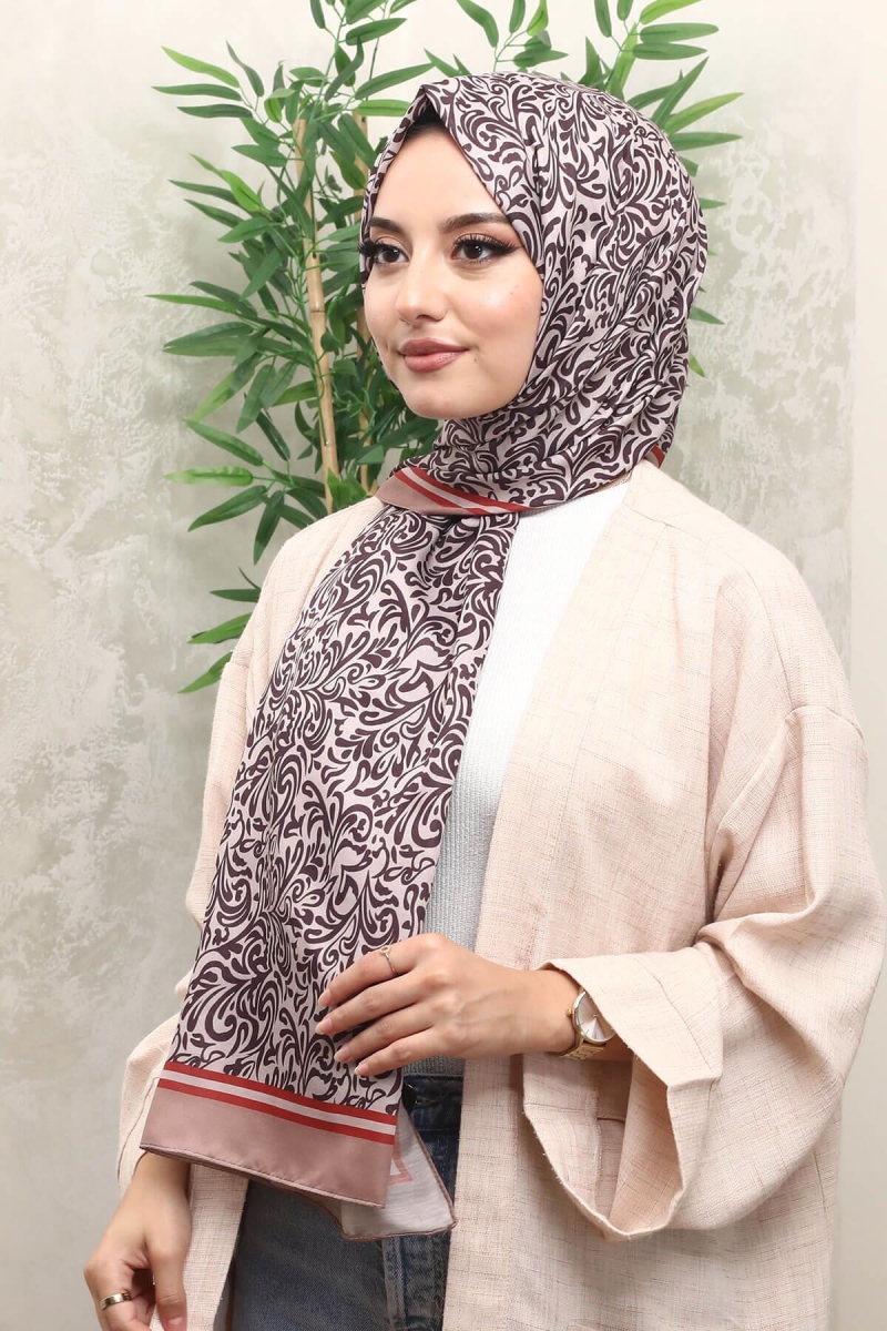 Damaks Desen Kahverengi Soft Pamuk Şal;Ölçü:75x185;Kumaş:%50 Pamuk %50 Polyester;Dört mevsim kullanıma uygundur.;Kolayca şekil alır, önü tok ve dik durur.; Solmaya ve kırışmaya dayanıklıdır.; İç göstermez,kayma yapmaz.; Ütü gerektirmez.;Kullanılan ışıklardan dolayı renk farklılıkları olabilir.