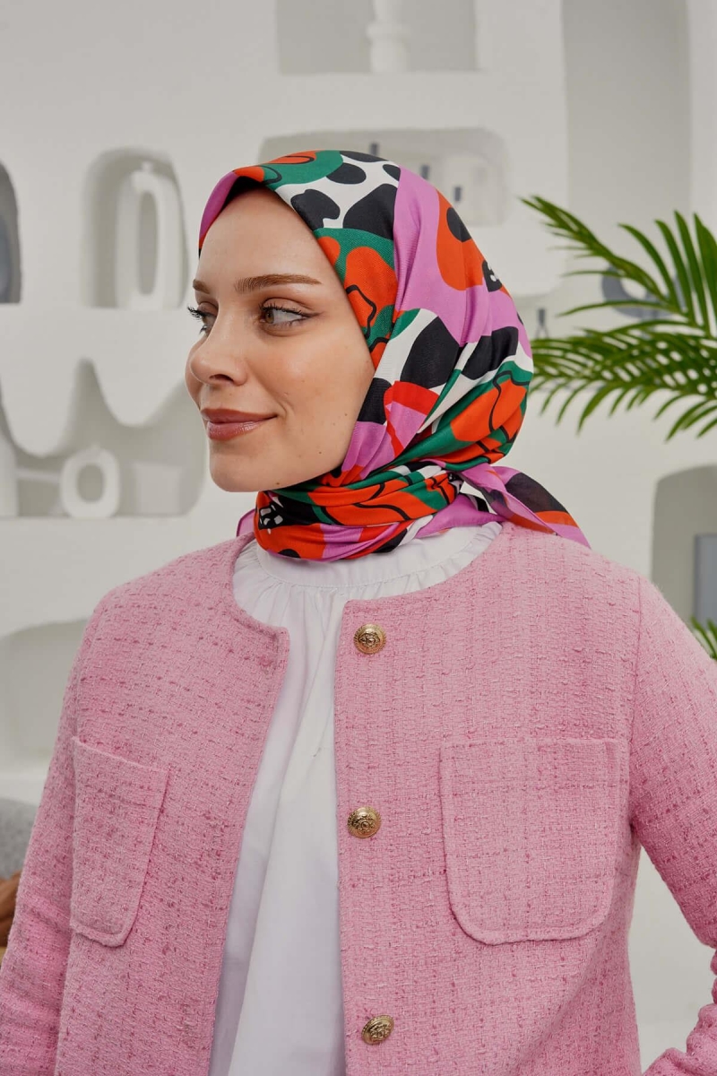 Yaprak Desen Pembe Soft Pamuk Eşarp;Ölçü:95x95;Kumaş:%50 Pamuk %50 Polyester;Dört mevsim kullanıma uygundur.;Kolayca şekil alır, önü tok ve dik durur.; Solmaya ve kırışmaya dayanıklıdır.; İç göstermez,kayma yapmaz.; Ütü gerektirmez.;Kullanılan ışıklardan dolayı renk farklılıkları olabilir.