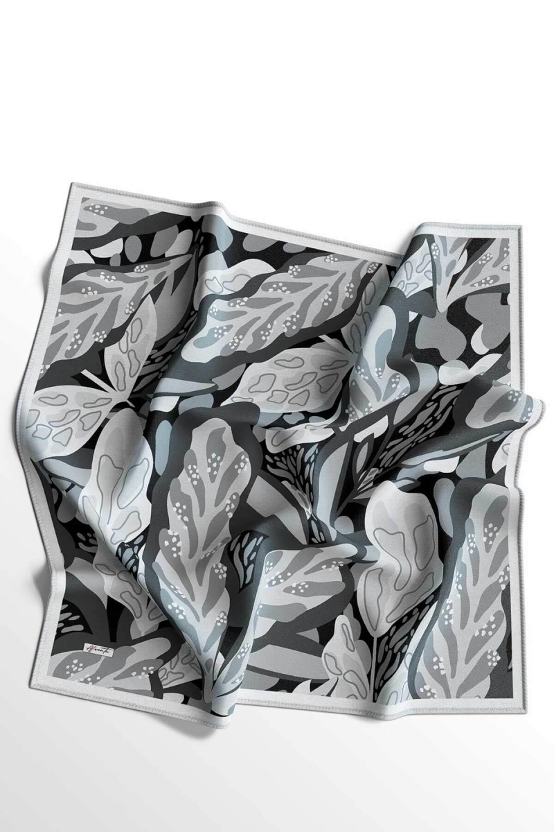 Yaprak Desen Gri Soft Pamuk Eşarp;Ölçü:95x95;Kumaş:%50 Pamuk %50 Polyester;Dört mevsim kullanıma uygundur.;Kolayca şekil alır, önü tok ve dik durur.; Solmaya ve kırışmaya dayanıklıdır.; İç göstermez,kayma yapmaz.; Ütü gerektirmez.;Kullanılan ışıklardan dolayı renk farklılıkları olabilir.