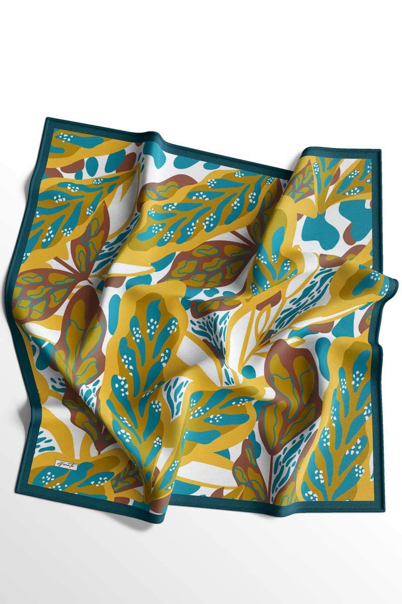Yaprak Desen Yeşil Soft Pamuk Eşarp;Ölçü:95x95;Kumaş:%50 Pamuk %50 Polyester;Dört mevsim kullanıma uygundur.;Kolayca şekil alır, önü tok ve dik durur.; Solmaya ve kırışmaya dayanıklıdır.; İç göstermez,kayma yapmaz.; Ütü gerektirmez.;Kullanılan ışıklardan dolayı renk farklılıkları olabilir.