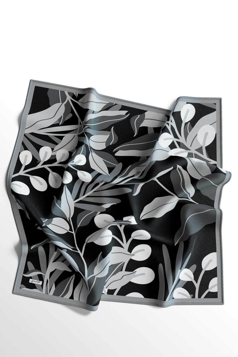 Yaprak Desen Siyah - Beyaz Soft Pamuk Eşarp;Ölçü:95x95;Kumaş:%50 Pamuk %50 Polyester;Dört mevsim kullanıma uygundur.;Kolayca şekil alır, önü tok ve dik durur.; Solmaya ve kırışmaya dayanıklıdır.; İç göstermez,kayma yapmaz.; Ütü gerektirmez.;Kullanılan ışıklardan dolayı renk farklılıkları olabilir.