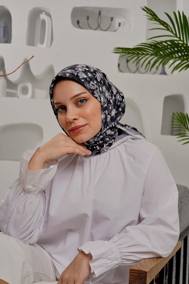 Çiçek Desen Gri Soft Pamuk Eşarp;Ölçü:95x95;Kumaş:%50 Pamuk %50 Polyester;Dört mevsim kullanıma uygundur.;Kolayca şekil alır, önü tok ve dik durur.; Solmaya ve kırışmaya dayanıklıdır.; İç göstermez,kayma yapmaz.; Ütü gerektirmez.;Kullanılan ışıklardan dolayı renk farklılıkları olabilir.