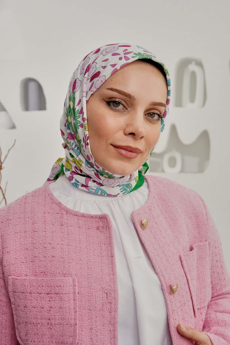 Çiçek Desen Yeşil Soft Pamuk Eşarp;Ölçü:95x95;Kumaş:%50 Pamuk %50 Polyester;Dört mevsim kullanıma uygundur.;Kolayca şekil alır, önü tok ve dik durur.; Solmaya ve kırışmaya dayanıklıdır.; İç göstermez,kayma yapmaz.; Ütü gerektirmez.;Kullanılan ışıklardan dolayı renk farklılıkları olabilir.