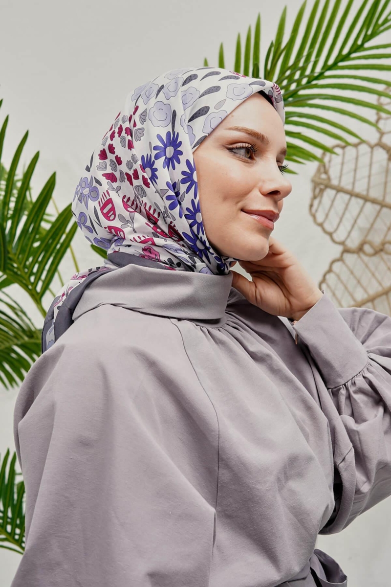 Çiçek Desen Koyu Gri Soft Pamuk Eşarp;Ölçü:95x95;Kumaş:%50 Pamuk %50 Polyester;Dört mevsim kullanıma uygundur.;Kolayca şekil alır, önü tok ve dik durur.; Solmaya ve kırışmaya dayanıklıdır.; İç göstermez,kayma yapmaz.; Ütü gerektirmez.;Kullanılan ışıklardan dolayı renk farklılıkları olabilir.