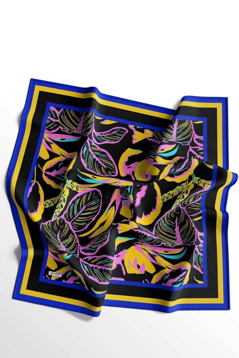 Yaprak Desen Lacivert Soft Pamuk Eşarp;Ölçü:95x95;Kumaş:%50 Pamuk %50 Polyester;Dört mevsim kullanıma uygundur.;Kolayca şekil alır, önü tok ve dik durur.; Solmaya ve kırışmaya dayanıklıdır.; İç göstermez,kayma yapmaz.; Ütü gerektirmez.;Kullanılan ışıklardan dolayı renk farklılıkları olabilir.