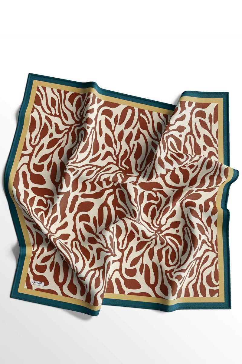 Yaprak Desen Kahverengi Soft Pamuk Eşarp;Ölçü:95x95;Kumaş:%50 Pamuk %50 Polyester;Dört mevsim kullanıma uygundur.;Kolayca şekil alır, önü tok ve dik durur.; Solmaya ve kırışmaya dayanıklıdır.; İç göstermez,kayma yapmaz.; Ütü gerektirmez.;Kullanılan ışıklardan dolayı renk farklılıkları olabilir.