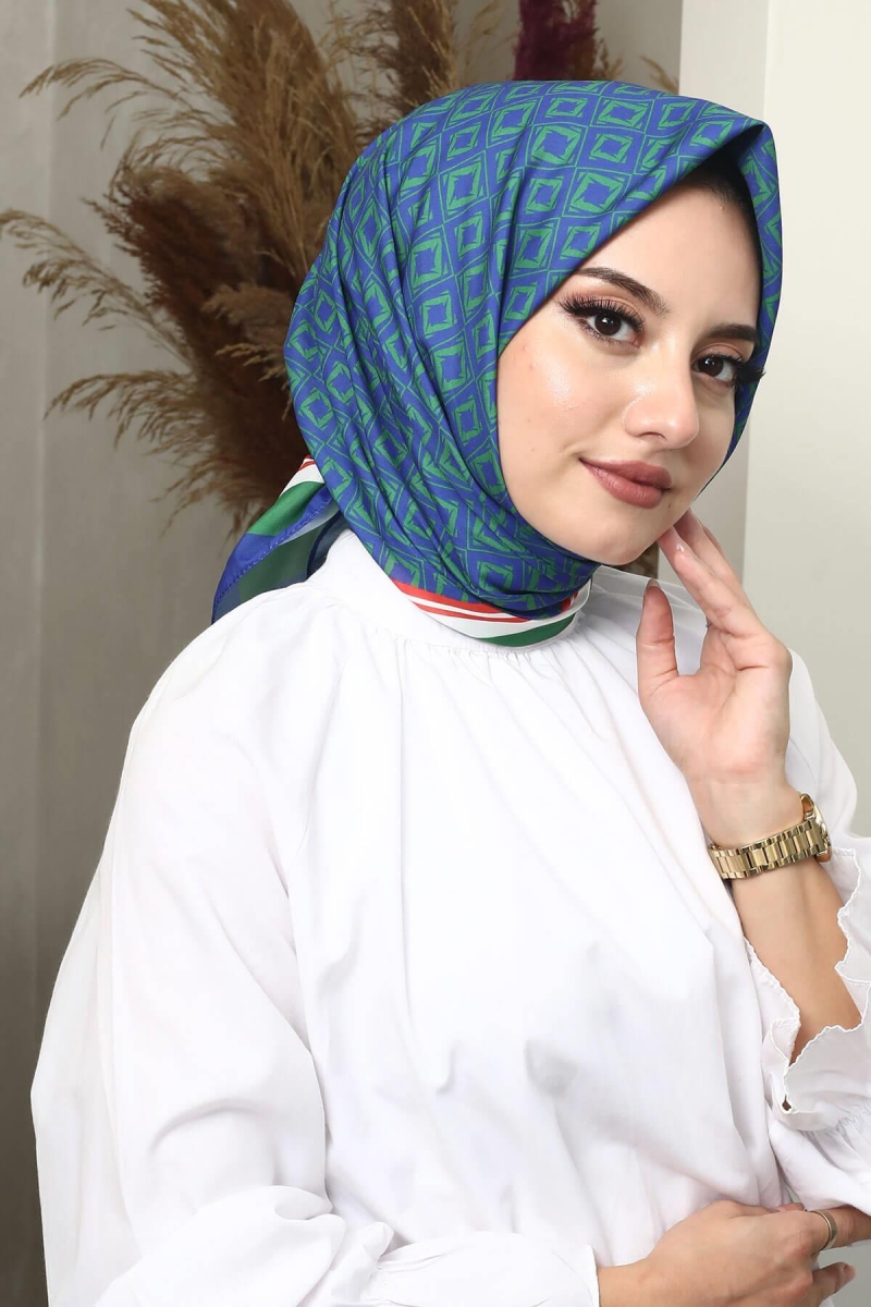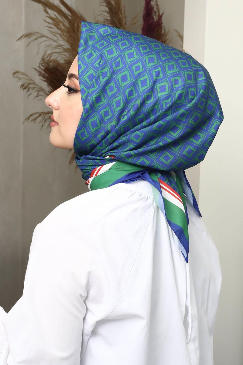 Kare Desen Koyu Mavi Soft Pamuk Eşarp;Ölçü:95x95;Kumaş:%50 Pamuk %50 Polyester;Dört mevsim kullanıma uygundur.;Kolayca şekil alır, önü tok ve dik durur.; Solmaya ve kırışmaya dayanıklıdır.; İç göstermez,kayma yapmaz.; Ütü gerektirmez.;Kullanılan ışıklardan dolayı renk farklılıkları olabilir.
