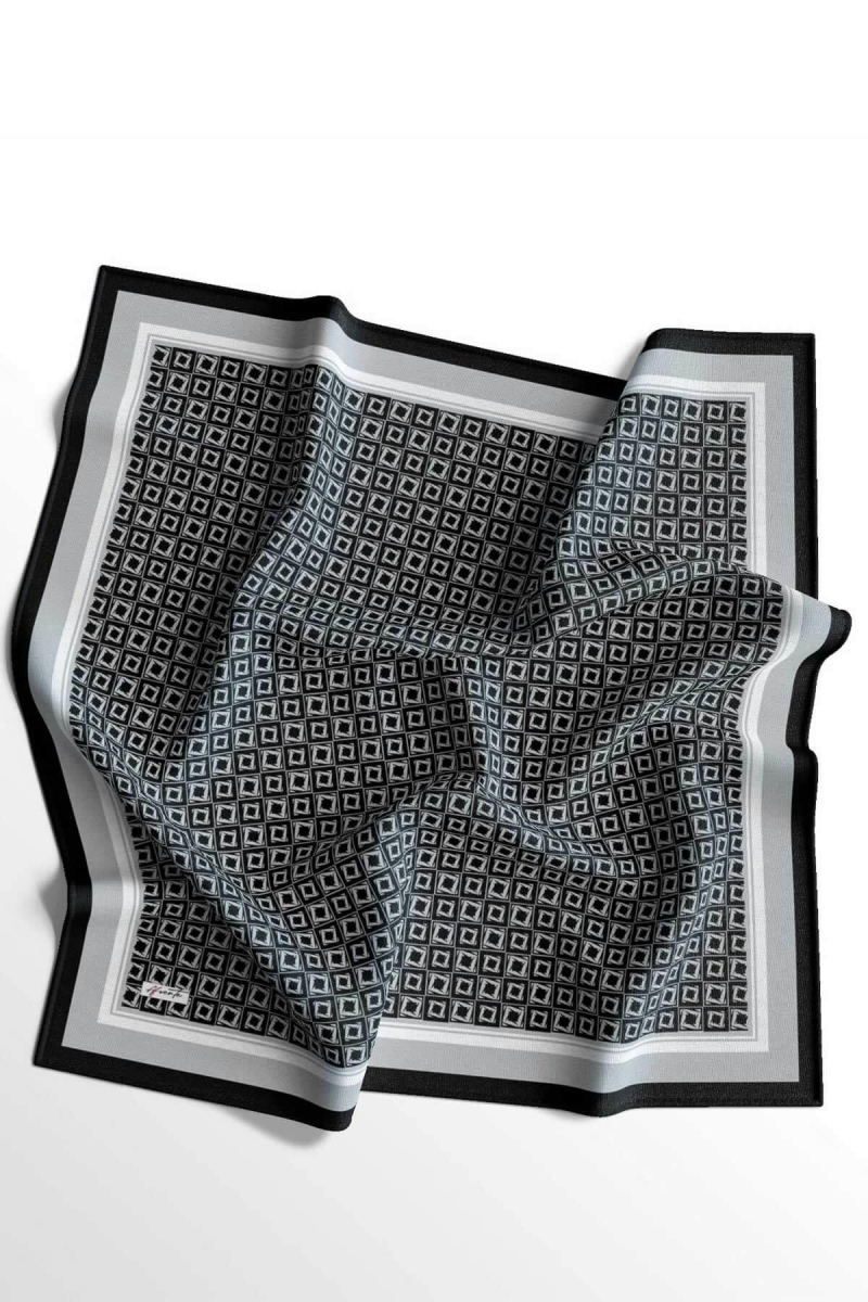 Kare Desen Gri Soft Pamuk Eşarp;Ölçü:95x95;Kumaş:%50 Pamuk %50 Polyester;Dört mevsim kullanıma uygundur.;Kolayca şekil alır, önü tok ve dik durur.; Solmaya ve kırışmaya dayanıklıdır.; İç göstermez,kayma yapmaz.; Ütü gerektirmez.;Kullanılan ışıklardan dolayı renk farklılıkları olabilir.