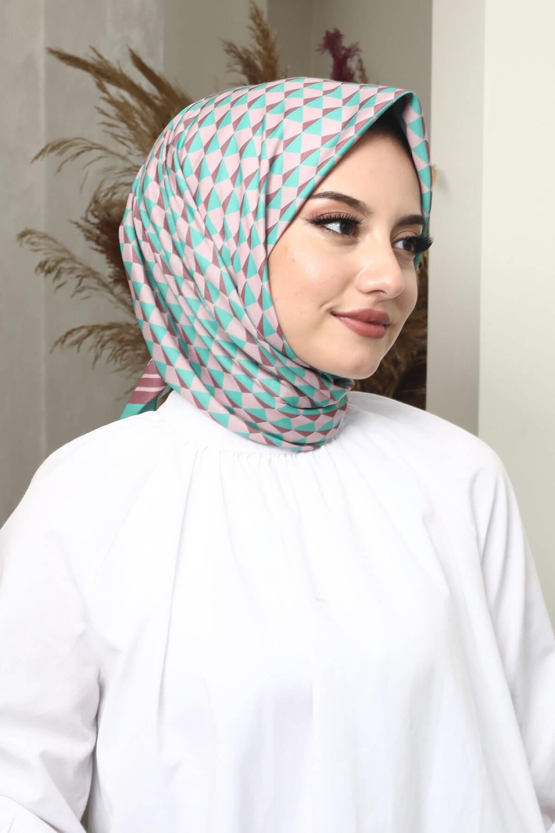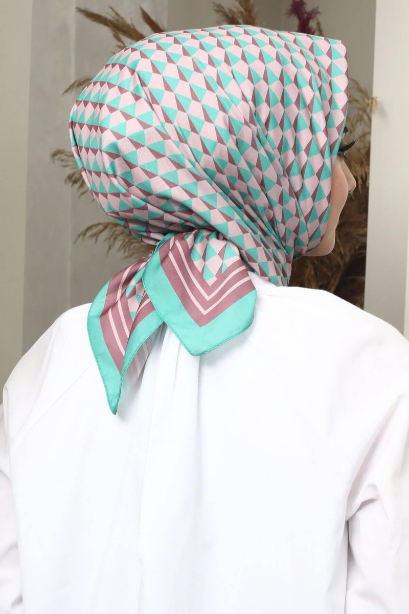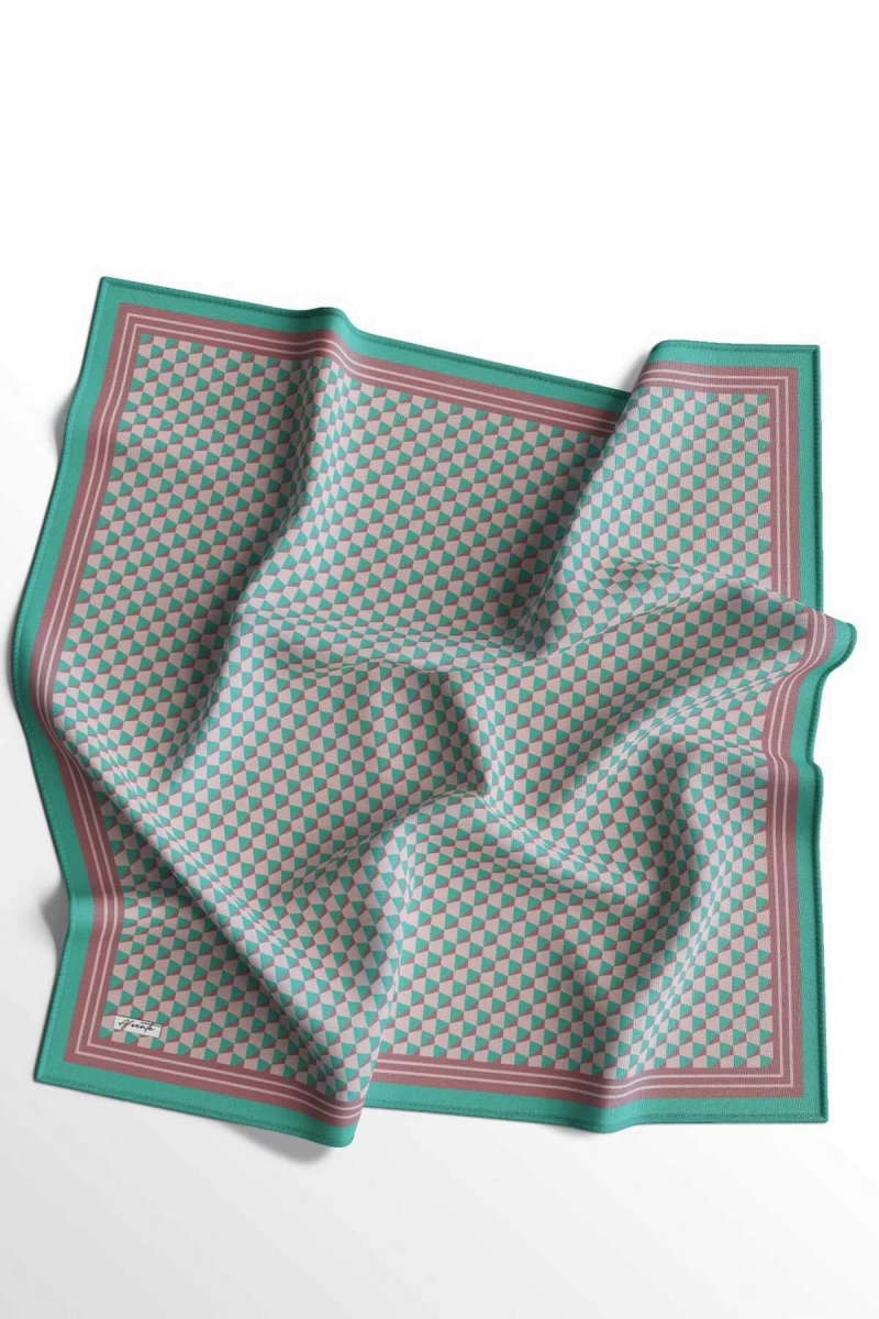 Geometrik Desen Su Yeşili Soft Pamuk Eşarp;Ölçü:95x95;Kumaş:%50 Pamuk %50 Polyester;Dört mevsim kullanıma uygundur.;Kolayca şekil alır, önü tok ve dik durur.; Solmaya ve kırışmaya dayanıklıdır.; İç göstermez,kayma yapmaz.; Ütü gerektirmez.;Kullanılan ışıklardan dolayı renk farklılıkları olabilir.