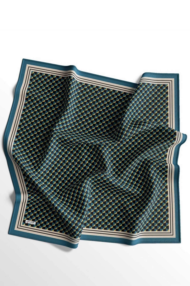 Geometrik Desen Turkuaz Soft Pamuk Eşarp;Ölçü:95x95;Kumaş:%50 Pamuk %50 Polyester;Dört mevsim kullanıma uygundur.;Kolayca şekil alır, önü tok ve dik durur.; Solmaya ve kırışmaya dayanıklıdır.; İç göstermez,kayma yapmaz.; Ütü gerektirmez.;Kullanılan ışıklardan dolayı renk farklılıkları olabilir.