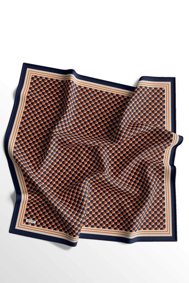 Geometrik Desen Turuncu Soft Pamuk Eşarp;Ölçü:95x95;Kumaş:%50 Pamuk %50 Polyester;Dört mevsim kullanıma uygundur.;Kolayca şekil alır, önü tok ve dik durur.; Solmaya ve kırışmaya dayanıklıdır.; İç göstermez,kayma yapmaz.; Ütü gerektirmez.;Kullanılan ışıklardan dolayı renk farklılıkları olabilir.