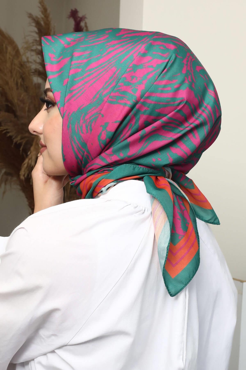 Dalgalı Desen Koyu Yeşil Soft Pamuk Eşarp;Ölçü:95x95;Kumaş:%50 Pamuk %50 Polyester;Dört mevsim kullanıma uygundur.;Kolayca şekil alır, önü tok ve dik durur.; Solmaya ve kırışmaya dayanıklıdır.; İç göstermez,kayma yapmaz.; Ütü gerektirmez.;Kullanılan ışıklardan dolayı renk farklılıkları olabilir.