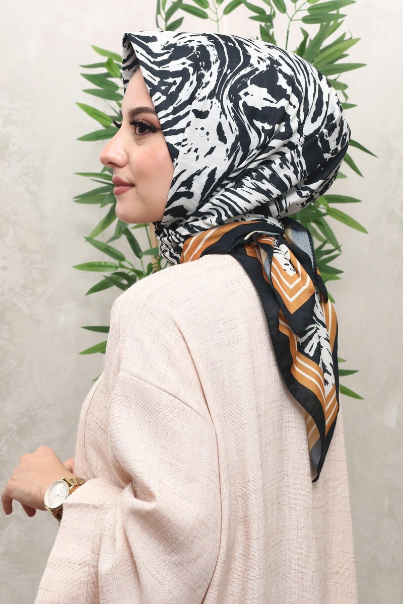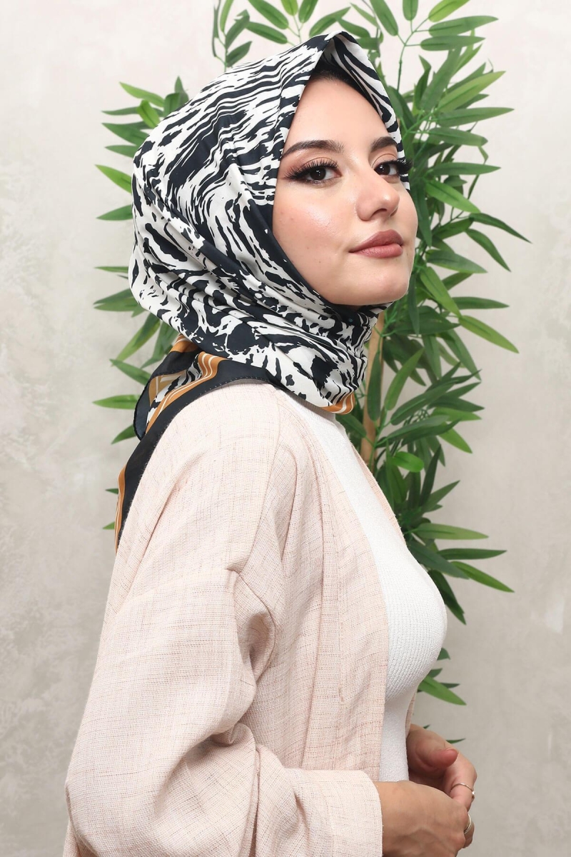 Dalgalı Desen Siyah Soft Pamuk Eşarp;Ölçü:95x95;Kumaş:%50 Pamuk %50 Polyester;Dört mevsim kullanıma uygundur.;Kolayca şekil alır, önü tok ve dik durur.; Solmaya ve kırışmaya dayanıklıdır.; İç göstermez,kayma yapmaz.; Ütü gerektirmez.;Kullanılan ışıklardan dolayı renk farklılıkları olabilir.