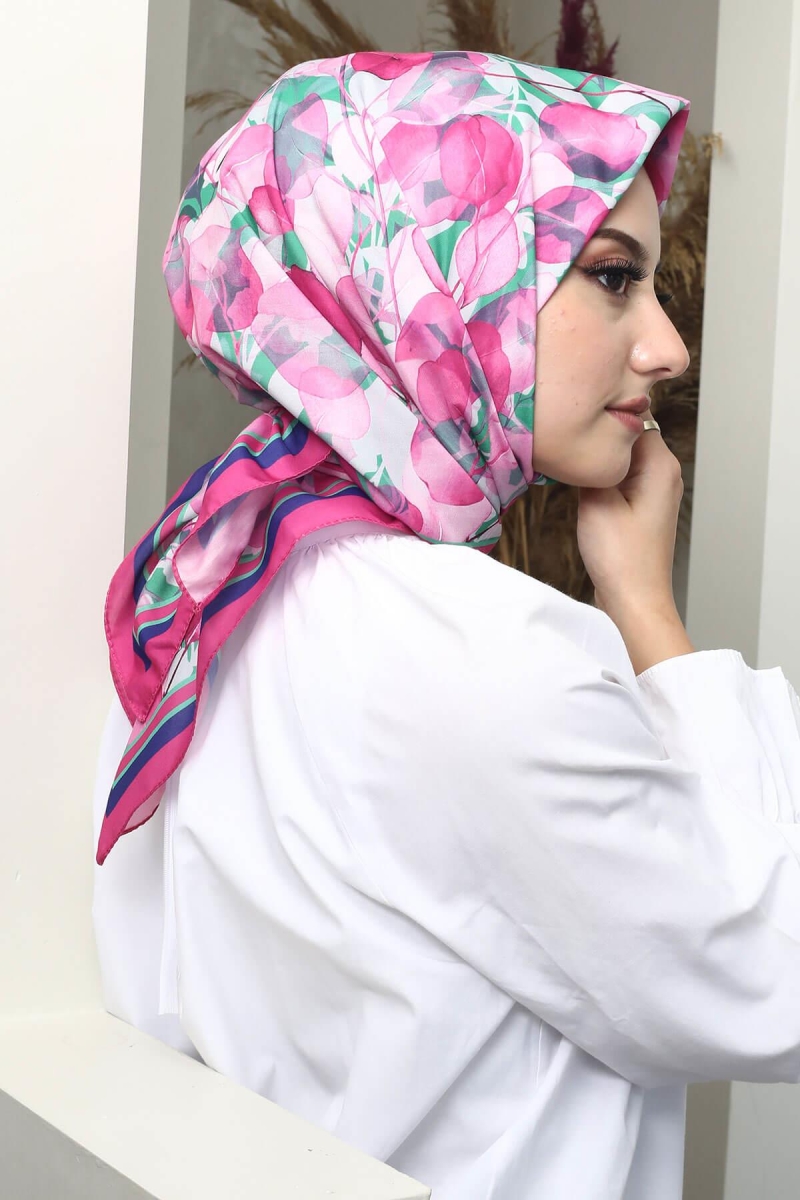 Yaprak Desen Pembe Soft Pamuk Eşarp;Ölçü:95x95;Kumaş:%50 Pamuk %50 Polyester;Dört mevsim kullanıma uygundur.;Kolayca şekil alır, önü tok ve dik durur.; Solmaya ve kırışmaya dayanıklıdır.; İç göstermez,kayma yapmaz.; Ütü gerektirmez.;Kullanılan ışıklardan dolayı renk farklılıkları olabilir.