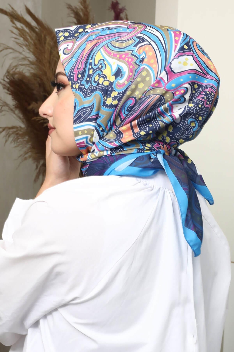 Dalgalı Desen Turkuaz Soft Pamuk Eşarp;Ölçü:95x95;Kumaş:%50 Pamuk %50 Polyester;Dört mevsim kullanıma uygundur.;Kolayca şekil alır, önü tok ve dik durur.; Solmaya ve kırışmaya dayanıklıdır.; İç göstermez,kayma yapmaz.; Ütü gerektirmez.;Kullanılan ışıklardan dolayı renk farklılıkları olabilir.