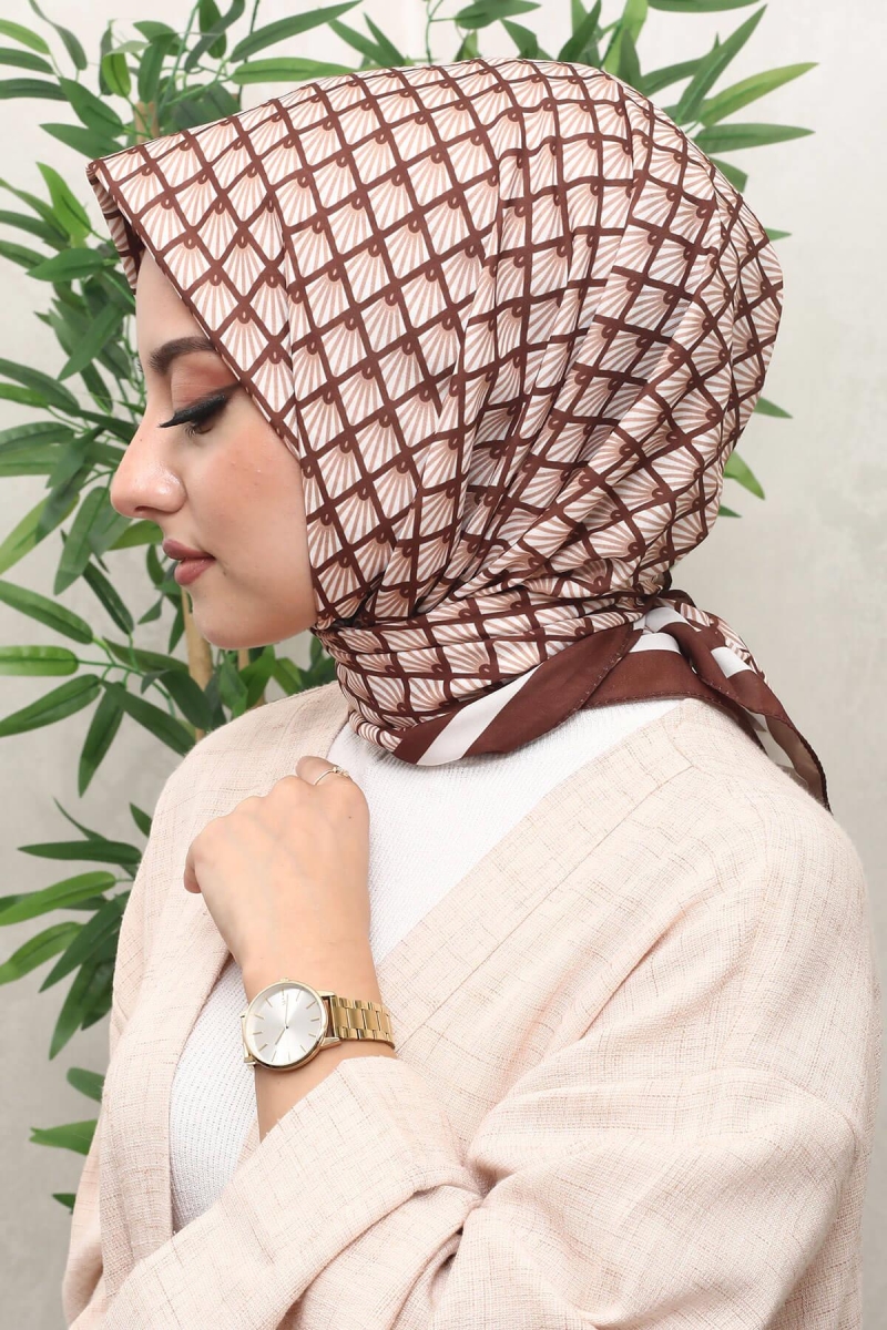 Üçgen Desen Kahverengi Soft Pamuk Eşarp;Ölçü:95x95;Kumaş:%50 Pamuk %50 Polyester;Dört mevsim kullanıma uygundur.;Kolayca şekil alır, önü tok ve dik durur.; Solmaya ve kırışmaya dayanıklıdır.; İç göstermez,kayma yapmaz.; Ütü gerektirmez.;Kullanılan ışıklardan dolayı renk farklılıkları olabilir.
