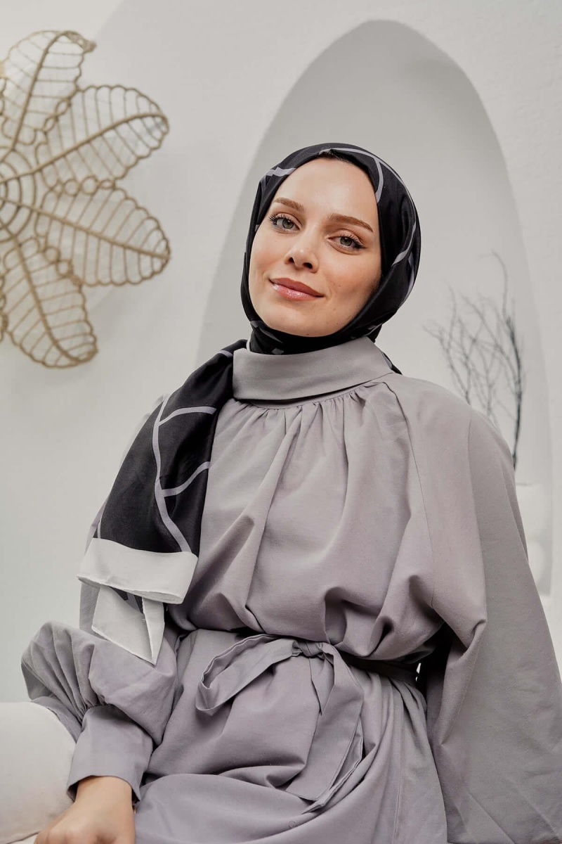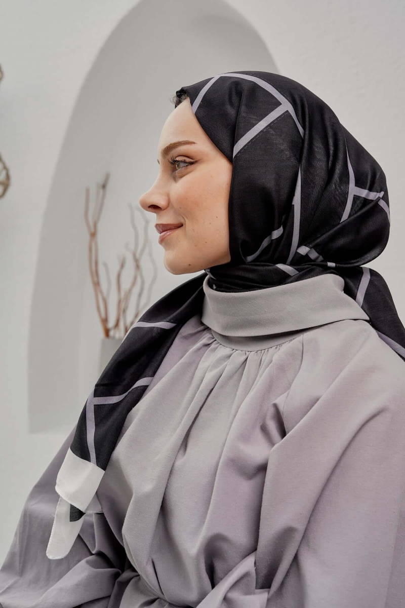 Geometrik Desen Siyah Soft Pamuk Şal;Ölçü:75x185;Kumaş:%50 Pamuk %50 Polyester;Dört mevsim kullanıma uygundur.;Kolayca şekil alır, önü tok ve dik durur.; Solmaya ve kırışmaya dayanıklıdır.; İç göstermez,kayma yapmaz.; Ütü gerektirmez.;Kullanılan ışıklardan dolayı renk farklılıkları olabilir.