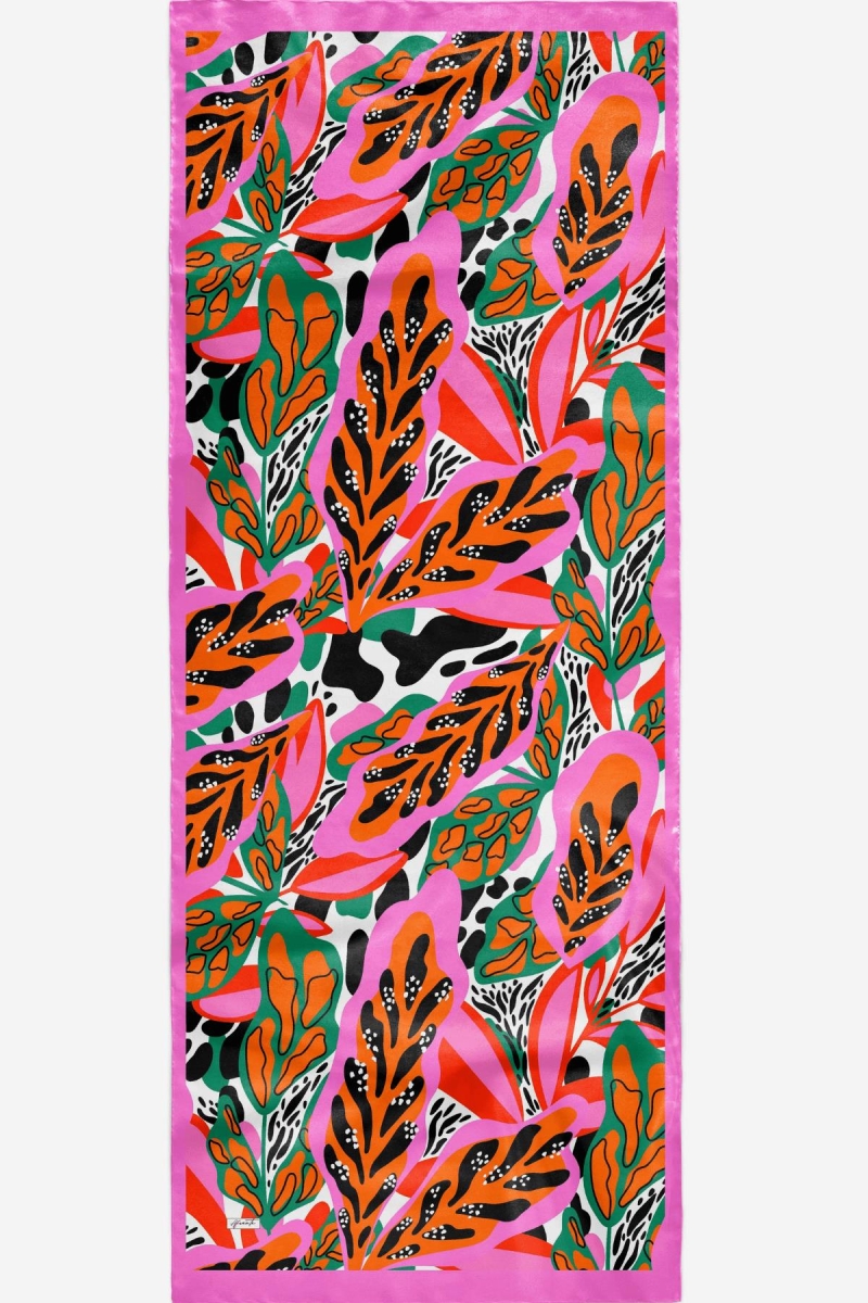 Tropikal Yaprak Desen Pembe Soft Pamuk Şal;Ölçü:75x185;Kumaş:%50 Pamuk %50 Polyester;Dört mevsim kullanıma uygundur.;Kolayca şekil alır, önü tok ve dik durur.; Solmaya ve kırışmaya dayanıklıdır.; İç göstermez,kayma yapmaz.; Ütü gerektirmez.;Kullanılan ışıklardan dolayı renk farklılıkları olabilir.
