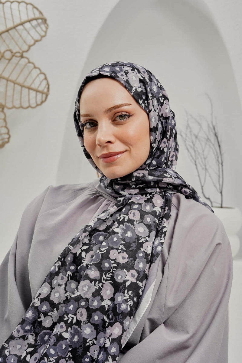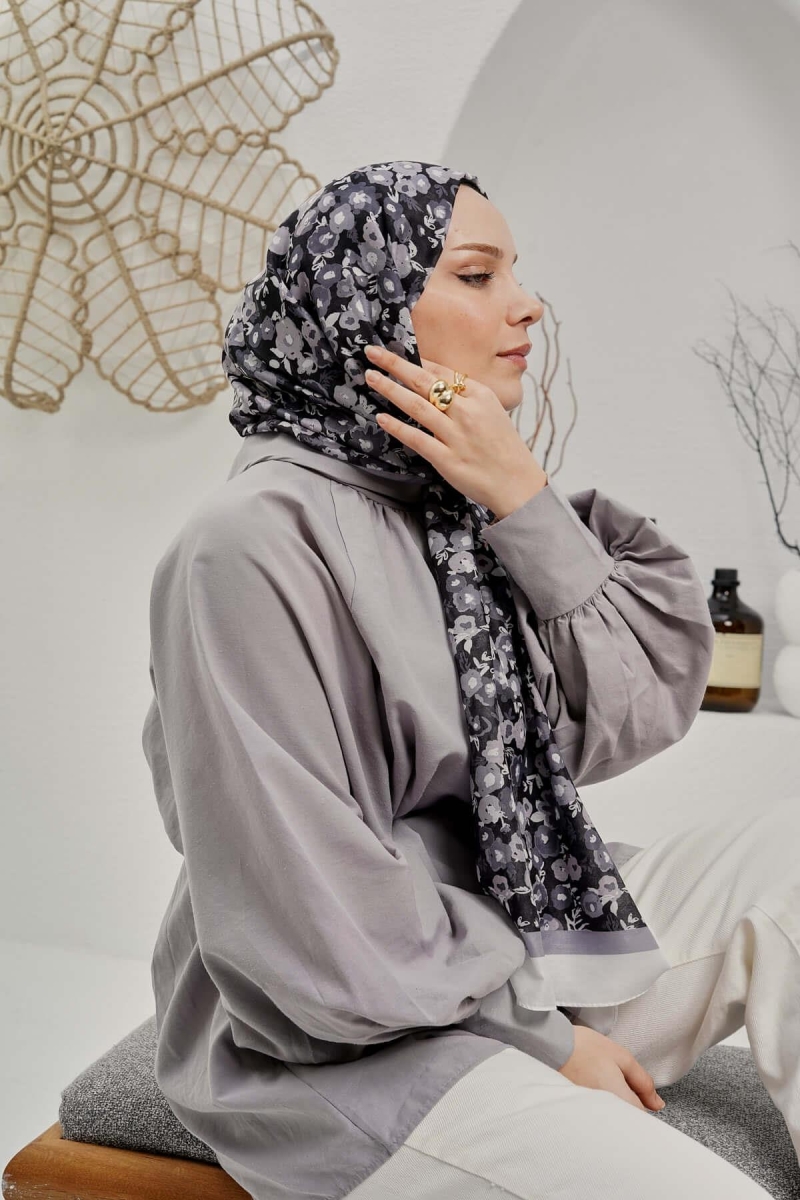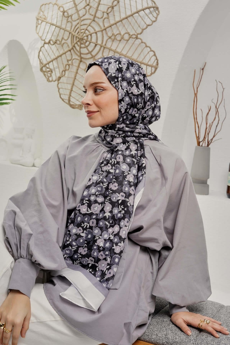 Çiçek Desen Gri Soft Pamuk Şal;Ölçü:75x185;Kumaş:%50 Pamuk %50 Polyester;Dört mevsim kullanıma uygundur.;Kolayca şekil alır, önü tok ve dik durur.; Solmaya ve kırışmaya dayanıklıdır.; İç göstermez,kayma yapmaz.; Ütü gerektirmez.;Kullanılan ışıklardan dolayı renk farklılıkları olabilir.