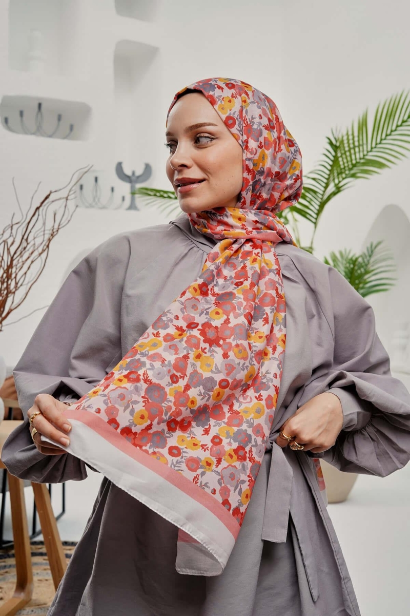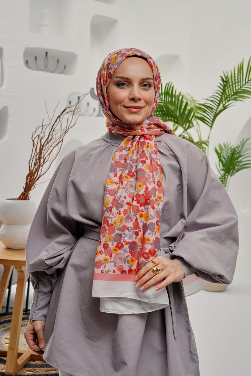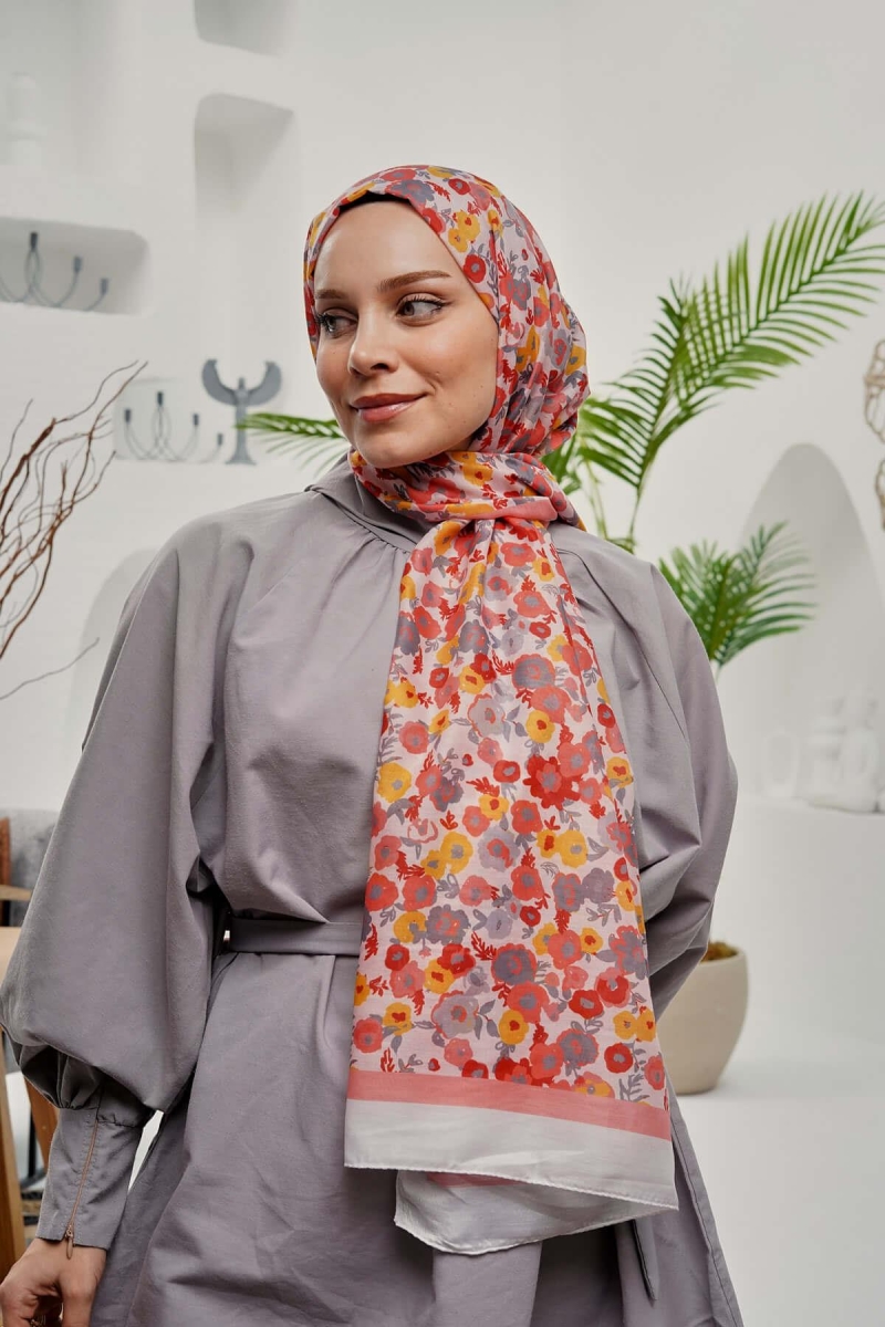 Çiçek Desen Turuncu Soft Pamuk Şal;Ölçü:75x185;Kumaş:%50 Pamuk %50 Polyester;Dört mevsim kullanıma uygundur.;Kolayca şekil alır, önü tok ve dik durur.; Solmaya ve kırışmaya dayanıklıdır.; İç göstermez,kayma yapmaz.; Ütü gerektirmez.;Kullanılan ışıklardan dolayı renk farklılıkları olabilir.