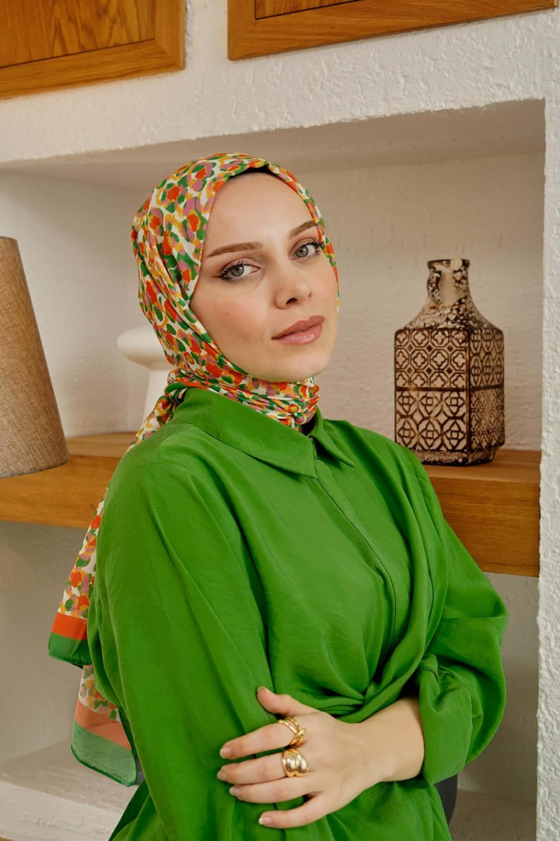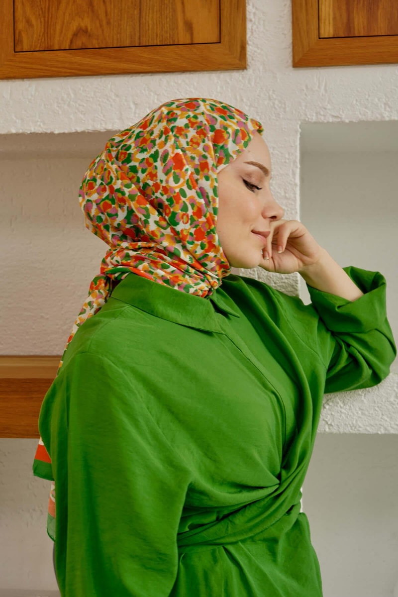 Leopar Desen Yeşil Soft Pamuk Şal;Ölçü:75x185;Kumaş:%50 Pamuk %50 Polyester;Dört mevsim kullanıma uygundur.;Kolayca şekil alır, önü tok ve dik durur.; Solmaya ve kırışmaya dayanıklıdır.; İç göstermez,kayma yapmaz.; Ütü gerektirmez.;Kullanılan ışıklardan dolayı renk farklılıkları olabilir.