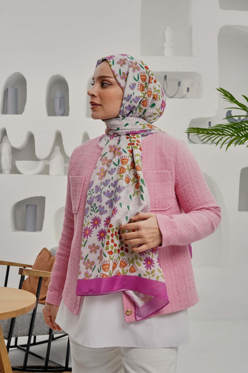 Çiçek Desen Pembe Soft Pamuk Şal;Ölçü:75x185;Kumaş:%50 Pamuk %50 Polyester;Dört mevsim kullanıma uygundur.;Kolayca şekil alır, önü tok ve dik durur.; Solmaya ve kırışmaya dayanıklıdır.; İç göstermez,kayma yapmaz.; Ütü gerektirmez.;Kullanılan ışıklardan dolayı renk farklılıkları olabilir.