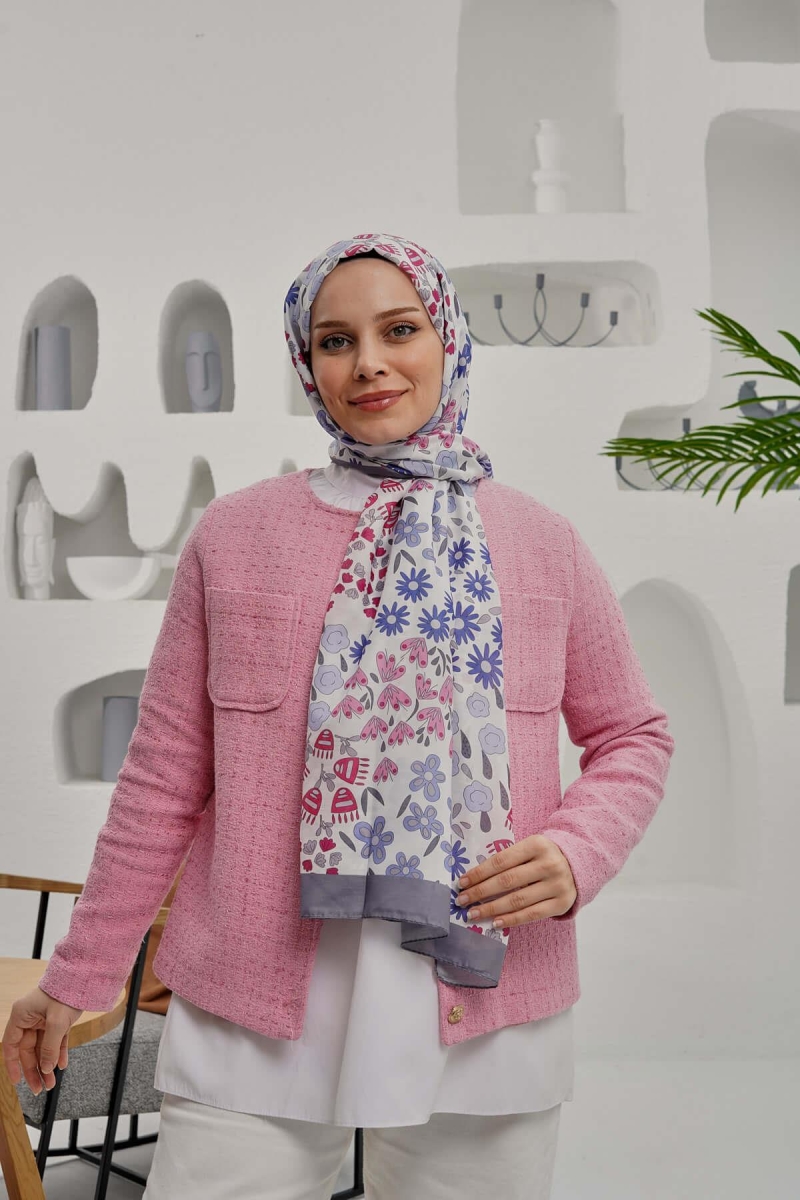 Çiçek Desen Gri Soft Pamuk Şal;Ölçü:75x185;Kumaş:%50 Pamuk %50 Polyester;Dört mevsim kullanıma uygundur.;Kolayca şekil alır, önü tok ve dik durur.; Solmaya ve kırışmaya dayanıklıdır.; İç göstermez,kayma yapmaz.; Ütü gerektirmez.;Kullanılan ışıklardan dolayı renk farklılıkları olabilir.