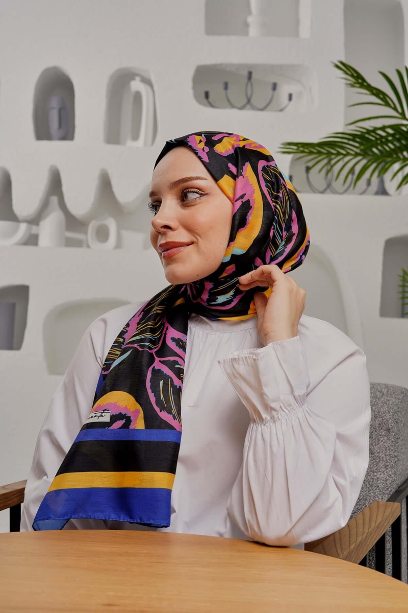 Yaprak Desen Lacivert Soft Pamuk Şal;Ölçü:75x185;Kumaş:%50 Pamuk %50 Polyester;Dört mevsim kullanıma uygundur.;Kolayca şekil alır, önü tok ve dik durur.; Solmaya ve kırışmaya dayanıklıdır.; İç göstermez,kayma yapmaz.; Ütü gerektirmez.;Kullanılan ışıklardan dolayı renk farklılıkları olabilir.