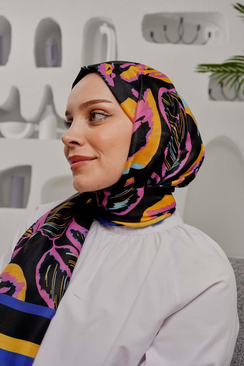 Yaprak Desen Lacivert Soft Pamuk Şal