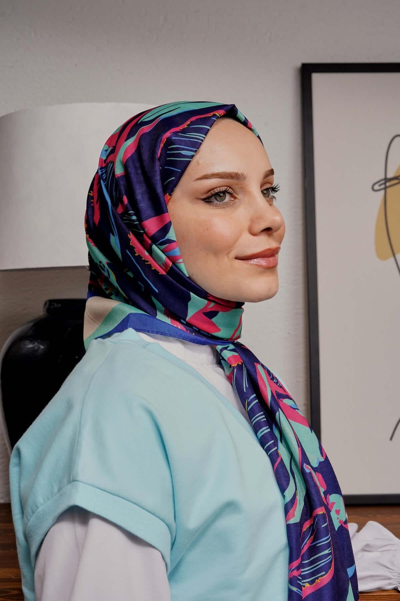 Yaprak Desen Açık Mavi Soft Pamuk Şal;Ölçü:75x185;Kumaş:%50 Pamuk %50 Polyester;Dört mevsim kullanıma uygundur.;Kolayca şekil alır, önü tok ve dik durur.; Solmaya ve kırışmaya dayanıklıdır.; İç göstermez,kayma yapmaz.; Ütü gerektirmez.;Kullanılan ışıklardan dolayı renk farklılıkları olabilir.