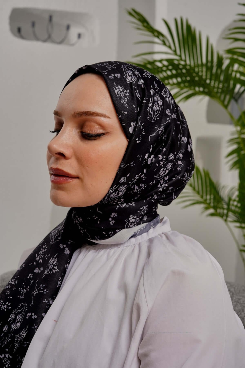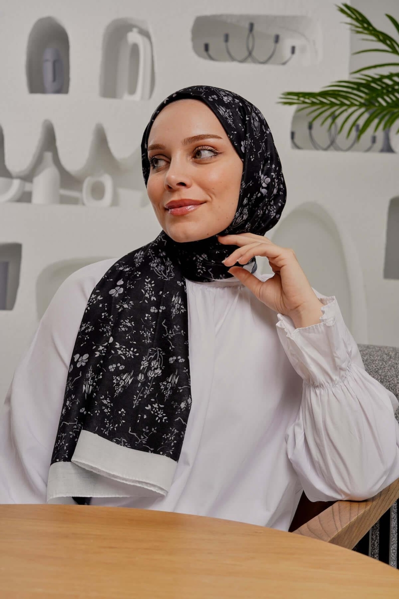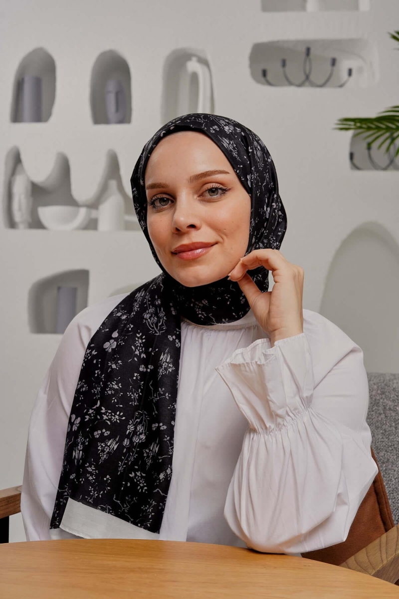 Çiçek Desen Siyah Soft Pamuk Şal;Ölçü:75x185;Kumaş:%50 Pamuk %50 Polyester;Dört mevsim kullanıma uygundur.;Kolayca şekil alır, önü tok ve dik durur.; Solmaya ve kırışmaya dayanıklıdır.; İç göstermez,kayma yapmaz.; Ütü gerektirmez.;Kullanılan ışıklardan dolayı renk farklılıkları olabilir.