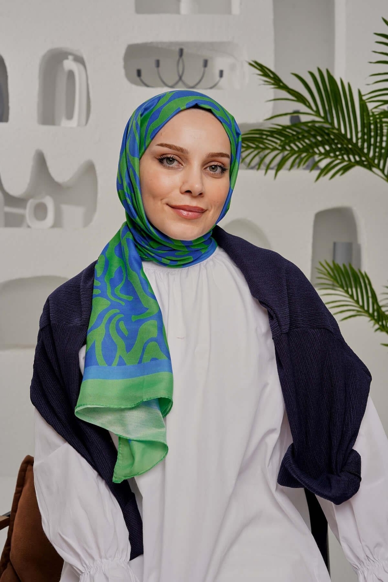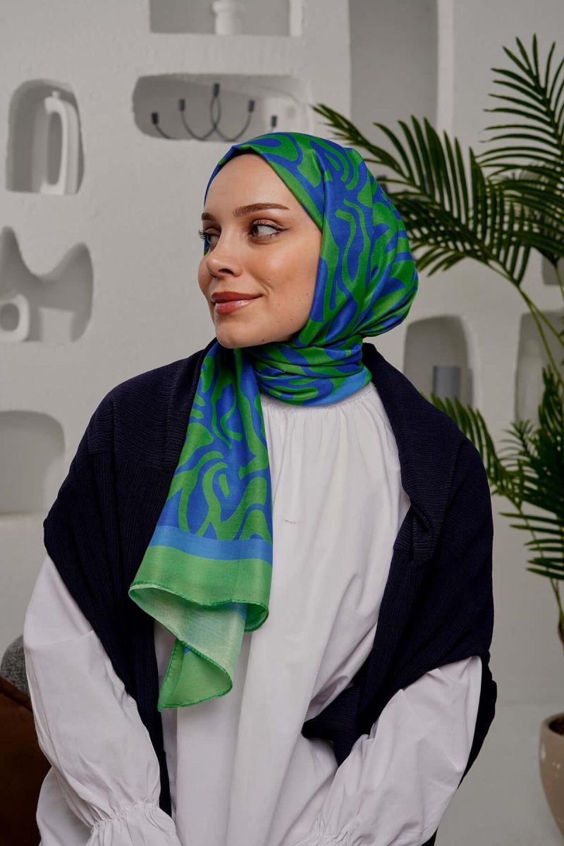 Soyut Desen Yeşil Soft Pamuk Şal;Ölçü:75x185;Kumaş:%50 Pamuk %50 Polyester;Dört mevsim kullanıma uygundur.;Kolayca şekil alır, önü tok ve dik durur.; Solmaya ve kırışmaya dayanıklıdır.; İç göstermez,kayma yapmaz.; Ütü gerektirmez.;Kullanılan ışıklardan dolayı renk farklılıkları olabilir.