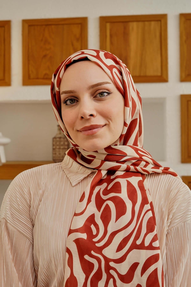 Soyut Desen Kahverengi Soft Pamuk Şal;Ölçü:75x185;Kumaş:%50 Pamuk %50 Polyester;Dört mevsim kullanıma uygundur.;Kolayca şekil alır, önü tok ve dik durur.; Solmaya ve kırışmaya dayanıklıdır.; İç göstermez,kayma yapmaz.; Ütü gerektirmez.;Kullanılan ışıklardan dolayı renk farklılıkları olabilir.M